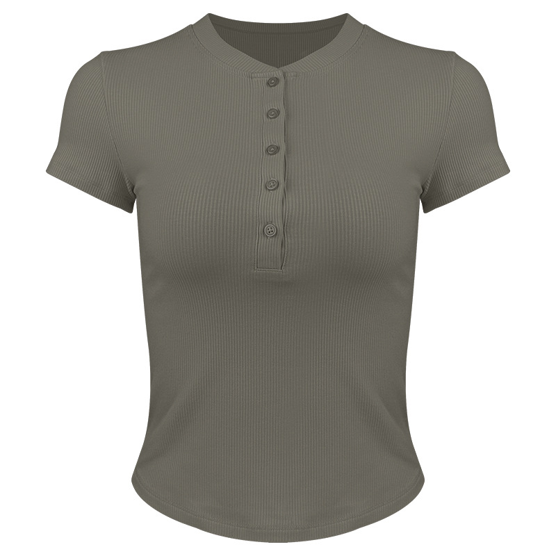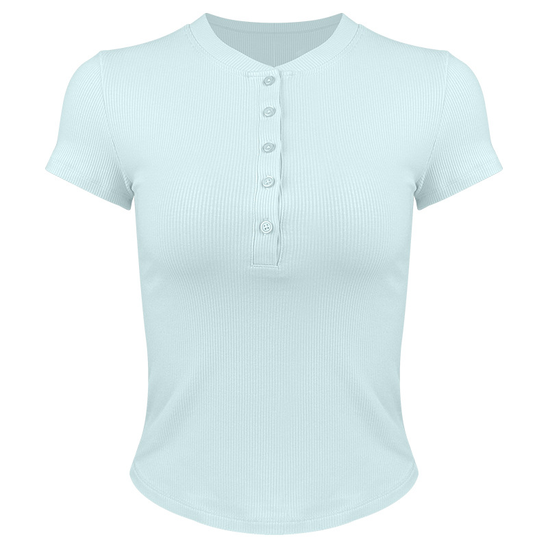주유 봄 신상품 여성용 요가복, 부드러운 모달 골지 피트니스복, 버튼형 헨리넥 스포츠웨어스토어 가기
