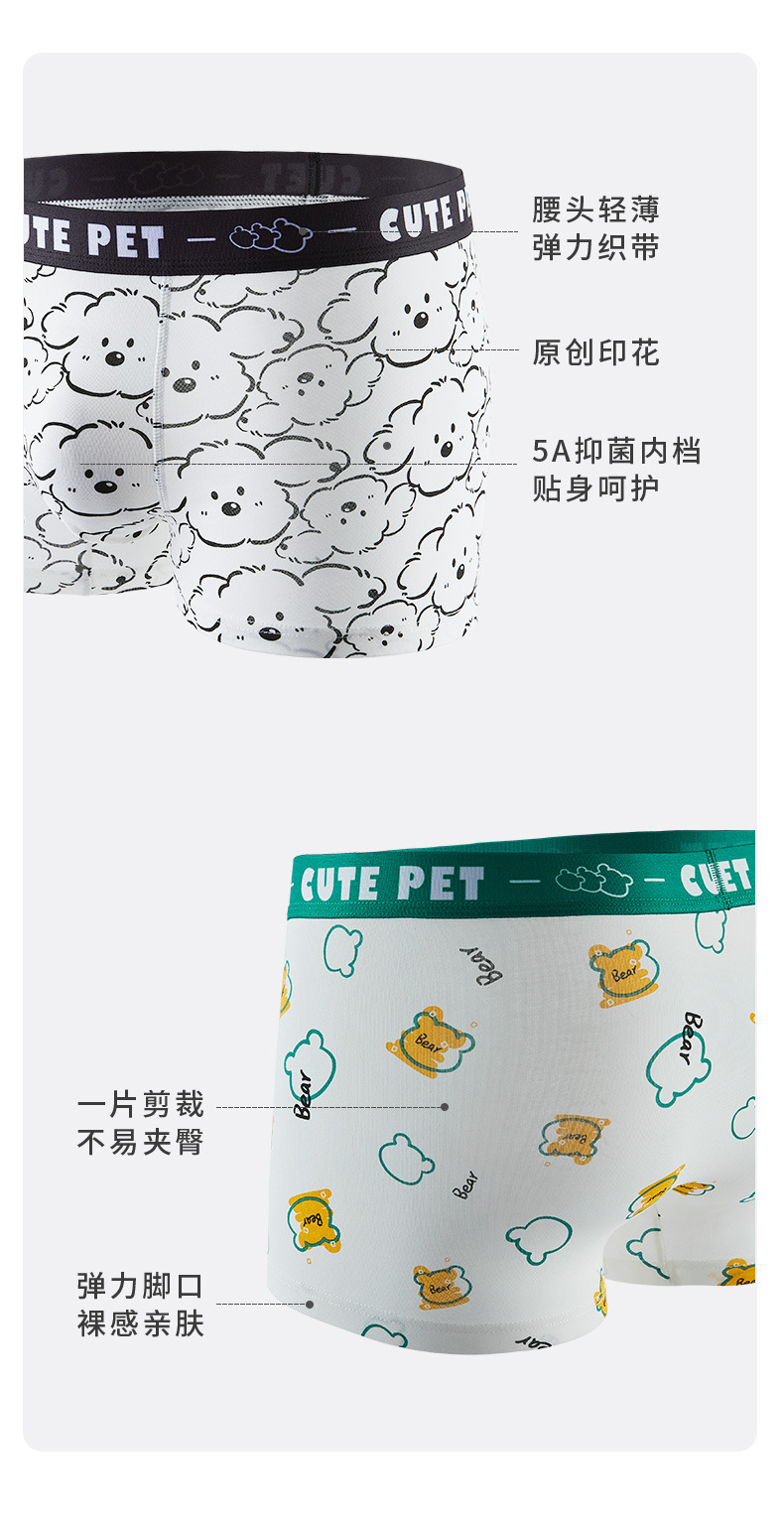 남성 속옷 순수 코튼 만화 귀여운 인쇄 맞춤형 트렌디 사각형 청소년 통기성 중간 허리 대형 복서 팬티