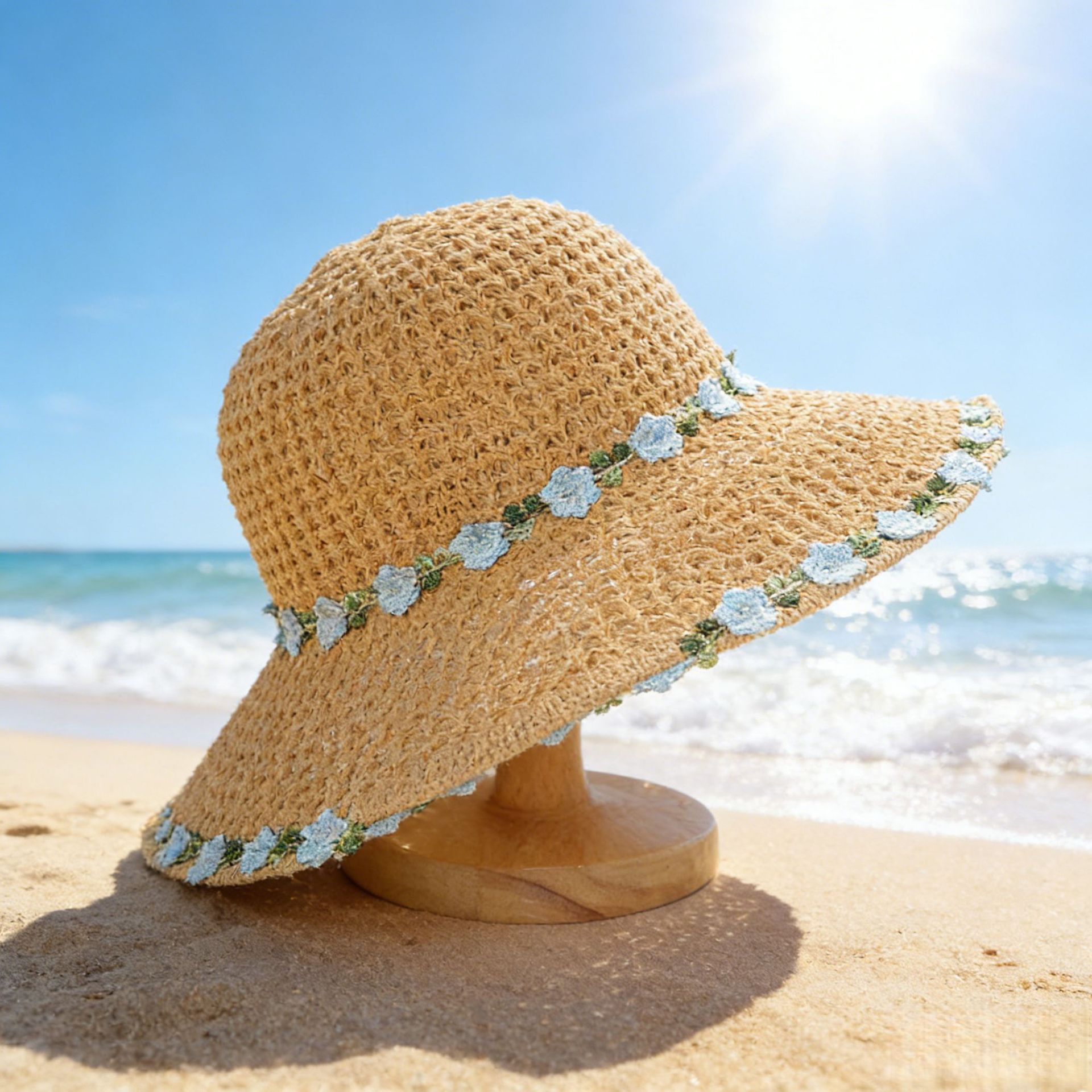 • 단색 꽃무늬 밀짚모자 - 카키색