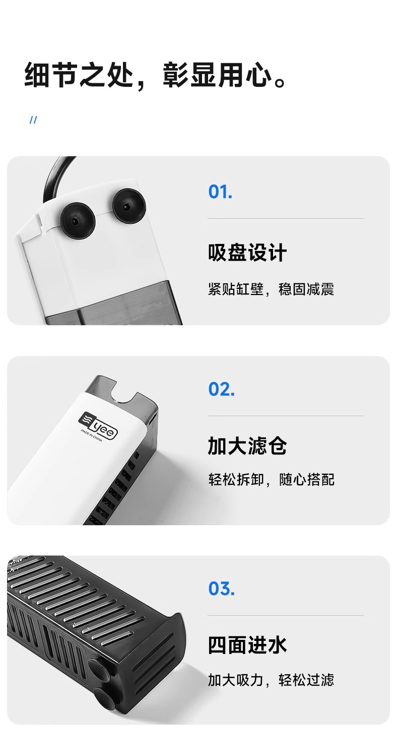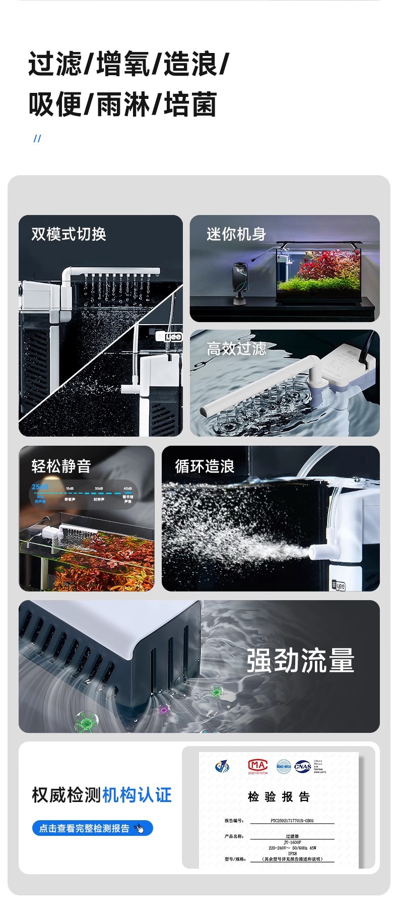 yee 수조 내장 필터, 무소음 6-in-1 정수, 물결 및 산소 생성, 소형 탱크 특수 필터, 내장 워터 펌프