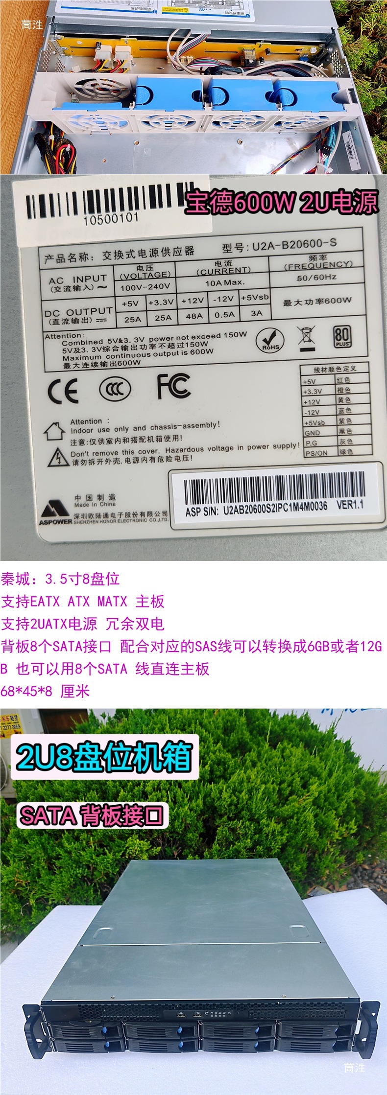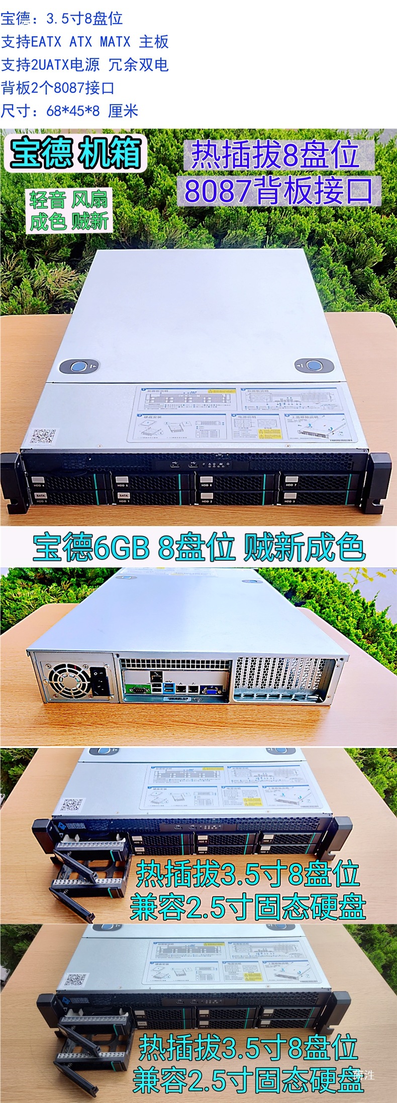 • 99 새로운 Baode 6GB 핫스왑 가능 3.5인치 8베이 새 상태? Baode 600w 2U 전원 공급 장치가 포함된 전체 랙