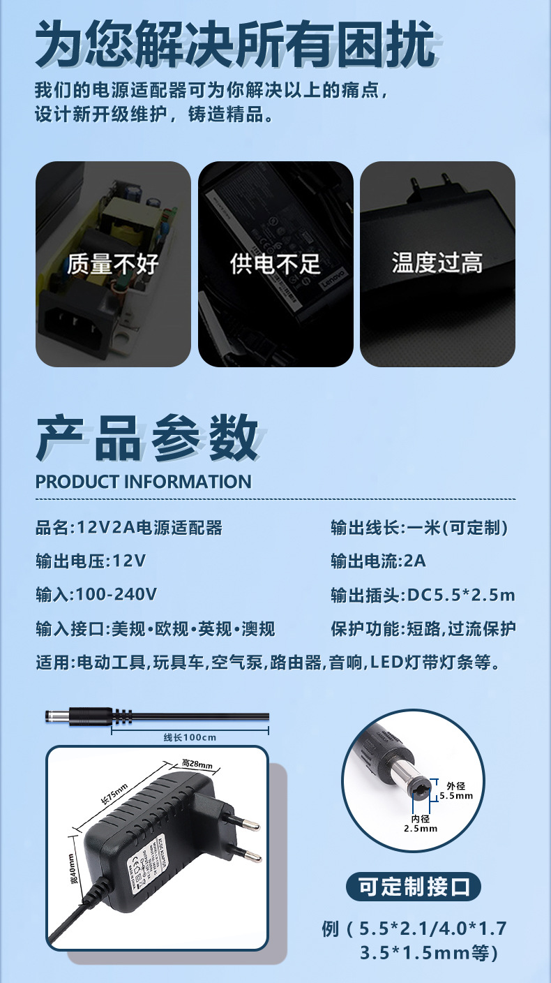 12V2A 전원 어댑터 LED 라이트 스트립 라이트 테이프 12V3A 12V5A 발광 문자 식물등 수족관등 전원