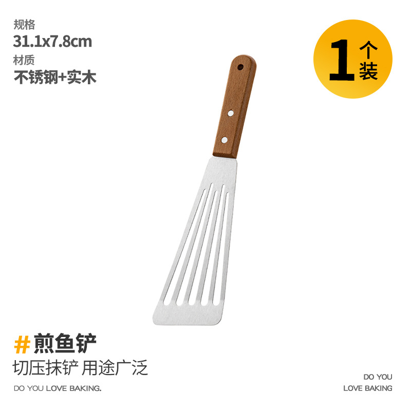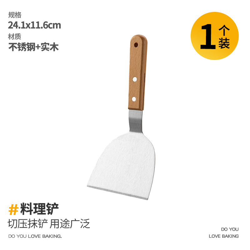 스테인레스 스틸 프라이팬 스푼, 스테이크 프라이팬용 특수 철판 요리 스푼, 나무 손잡이 요리 스푼, 상업용 팬케이크 도구스토어 가기