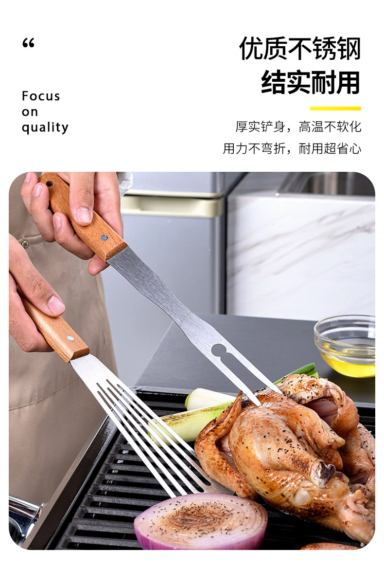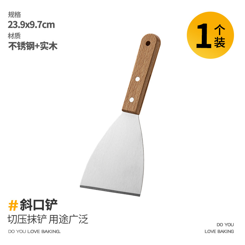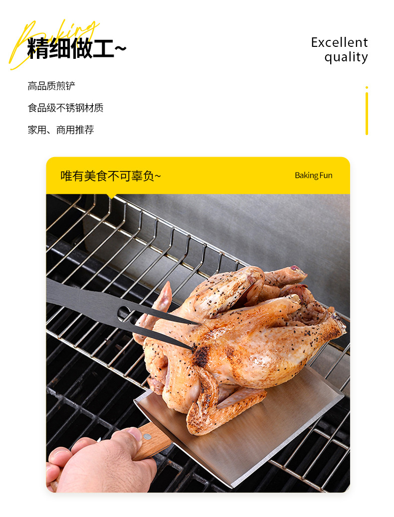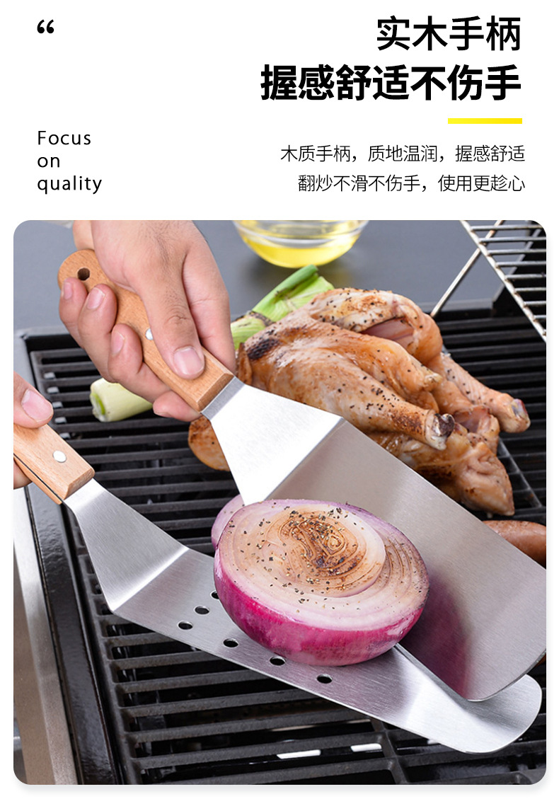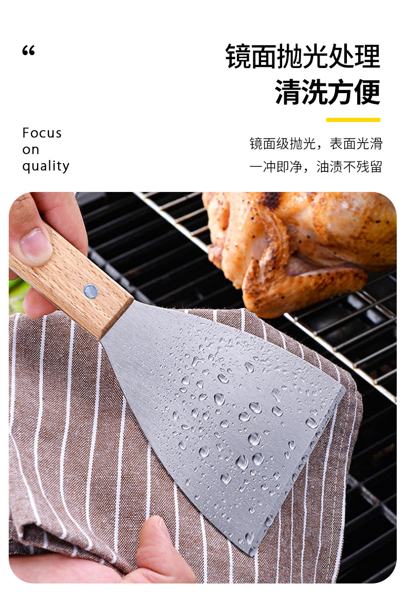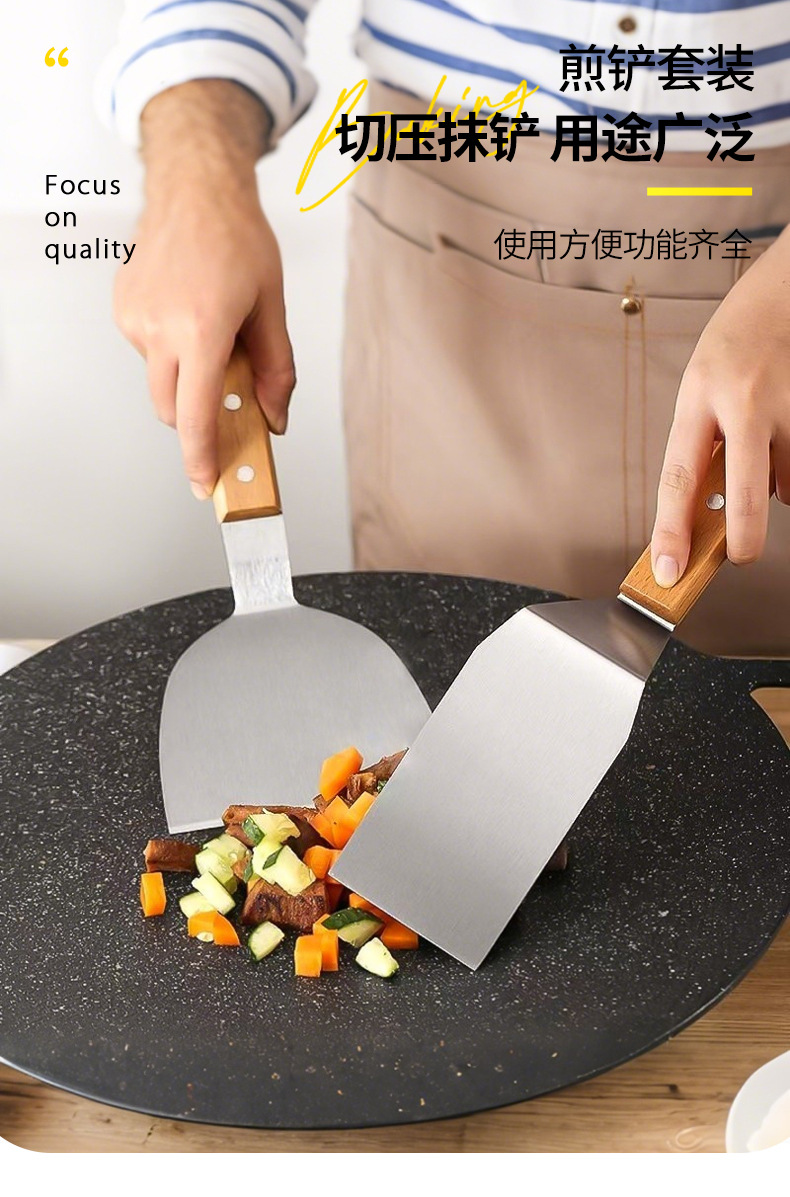 스테인레스 스틸 프라이팬 스푼, 스테이크 프라이팬용 특수 철판 요리 스푼, 나무 손잡이 요리 스푼, 상업용 팬케이크 도구
