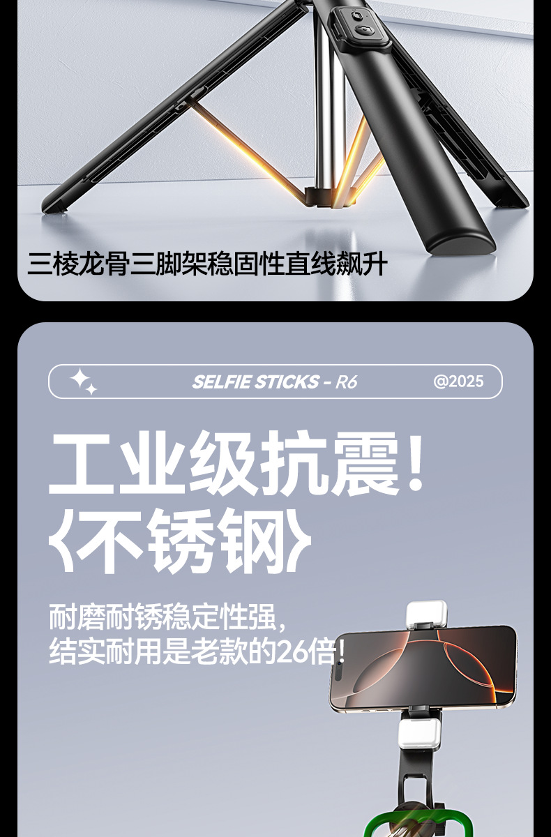 • [R6-7 키] [ 1.8m + 오버헤드 클램프 + 스테인레스 스틸 두꺼운 막대 + 삼각대 + Douyin 리모콘 + 1/4 커넥터]