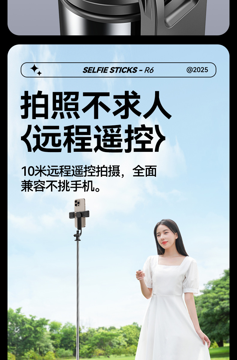 • [R6-1 버튼] [ 1.8m + 오버헤드 클램프 + 스테인레스 스틸 두꺼운 막대 + 삼각대 + 블루투스 리모컨 + 1/4 커넥터 ]