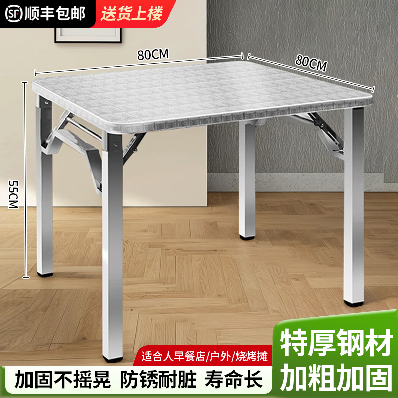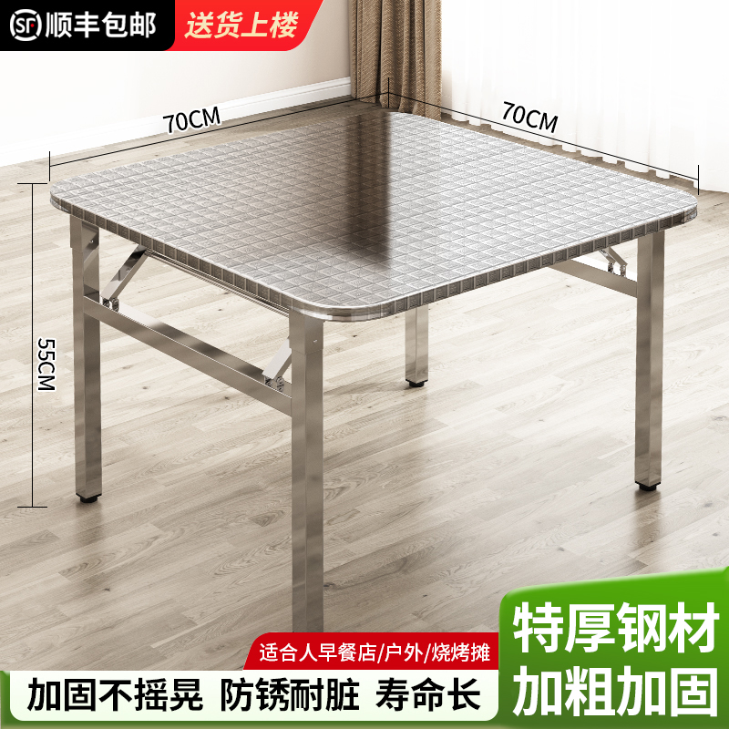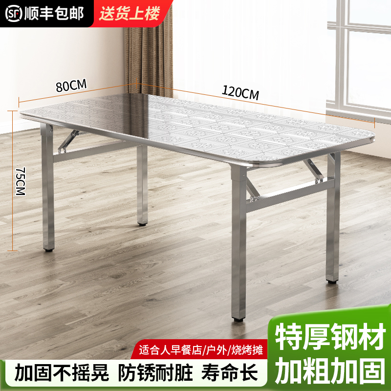 A6T 스테인레스 스틸 접이식 테이블 304 두꺼운 스테인레스 스틸 접이식 테이블 홈 식사 연구 컴퓨터 테이블 야외 식탁스토어 가기