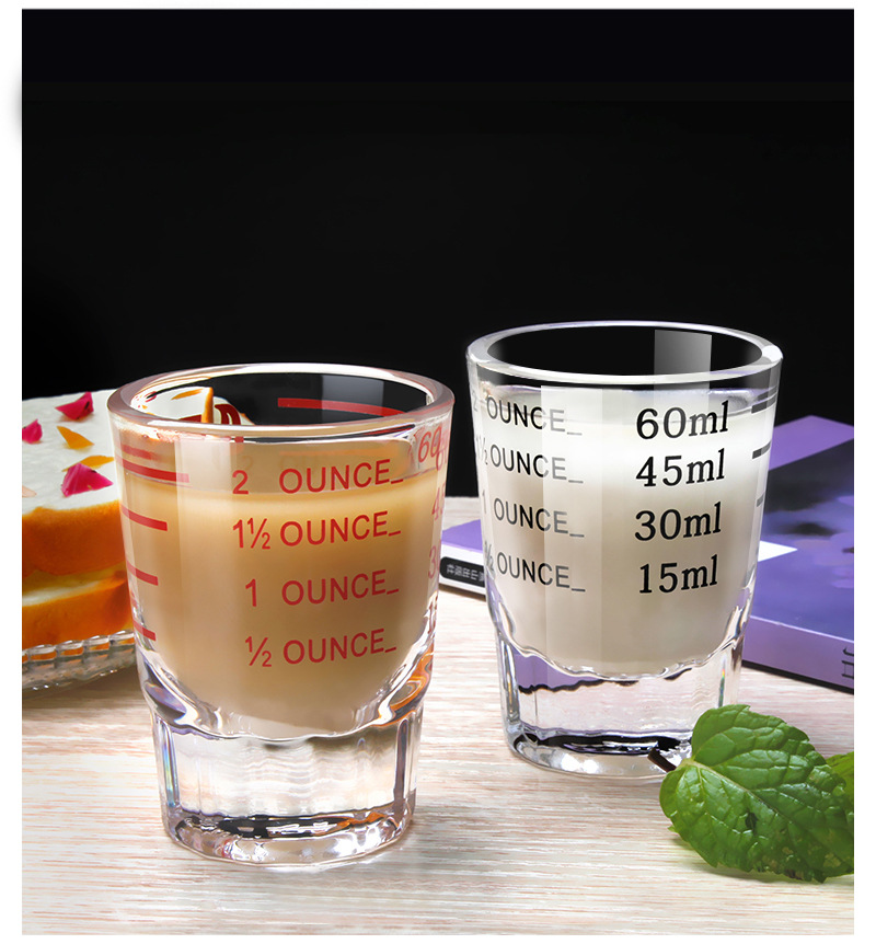 두꺼운 유리 측정 컵 이중 측정 스케일 컵 에스프레소 측정 컵 더블 측정 스케일 컵 우유 차 온스