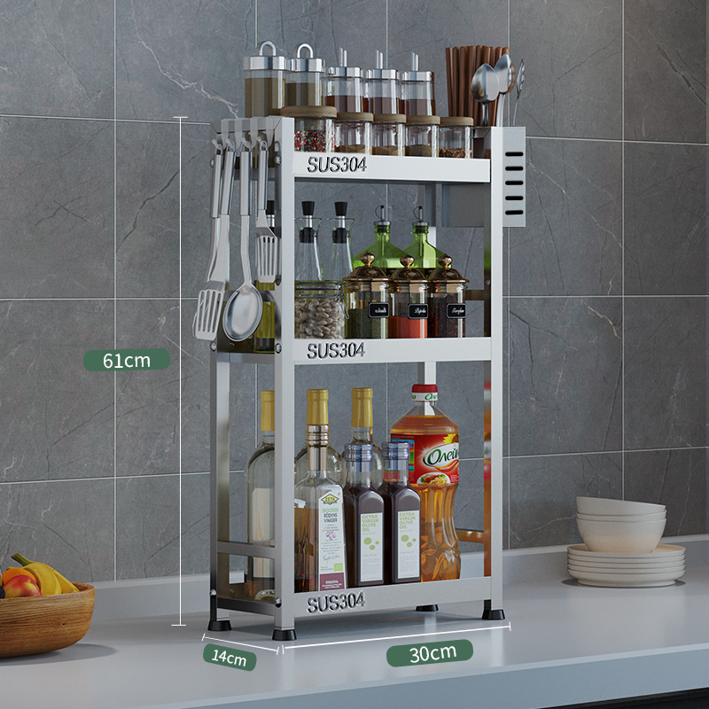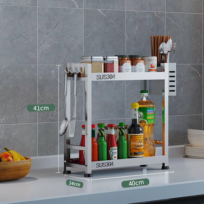 304 스테인레스 스틸 재료 랙 좁은 조미료 랙 미니 스토리지 랙 작은 조리대 스토리지 랙 주방 용품스토어 가기