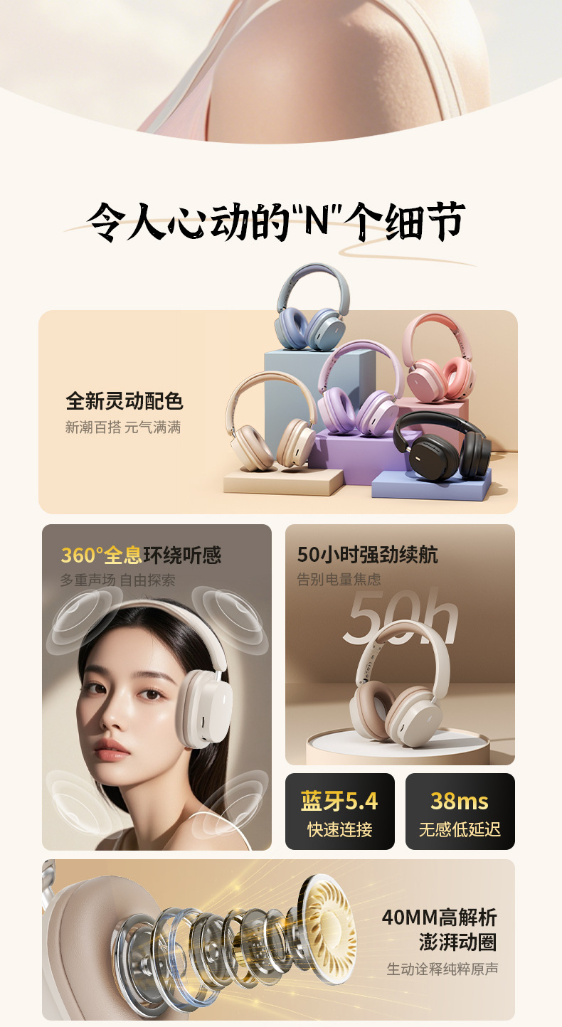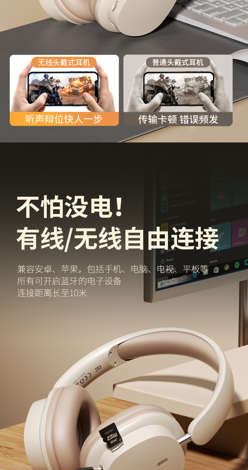 새로운 헤드 장착형 블루투스 헤드셋 무선 게임 음악 헤드셋 긴 배터리 수명 국경 간 헤드셋 제조 업체 도매 범용스토어 가기