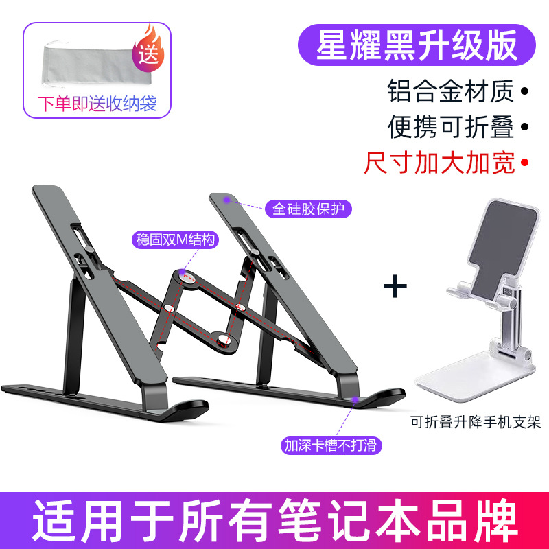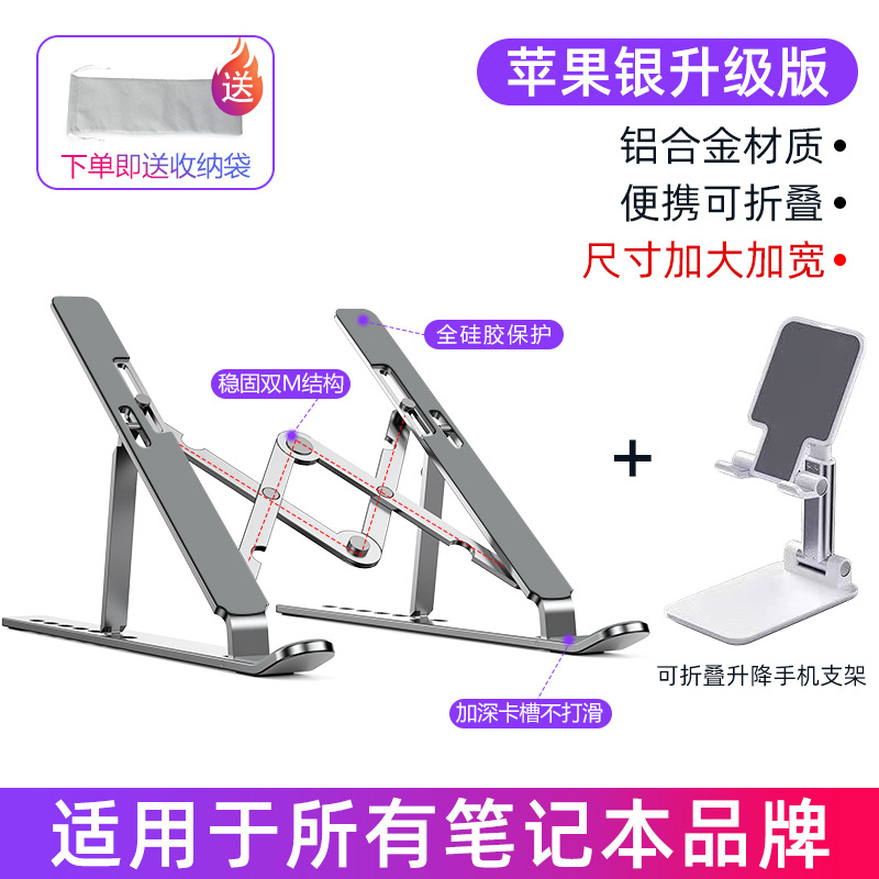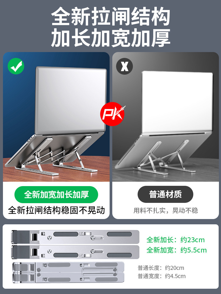 노트북 스탠드 데스크탑 엘리베이터 알루미늄 합금 매달려 냉각 접이식 휴대용 브래킷 리프팅 패드