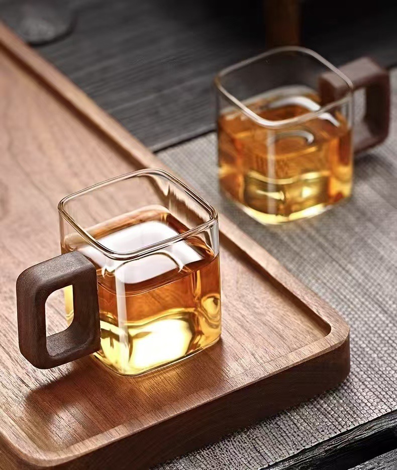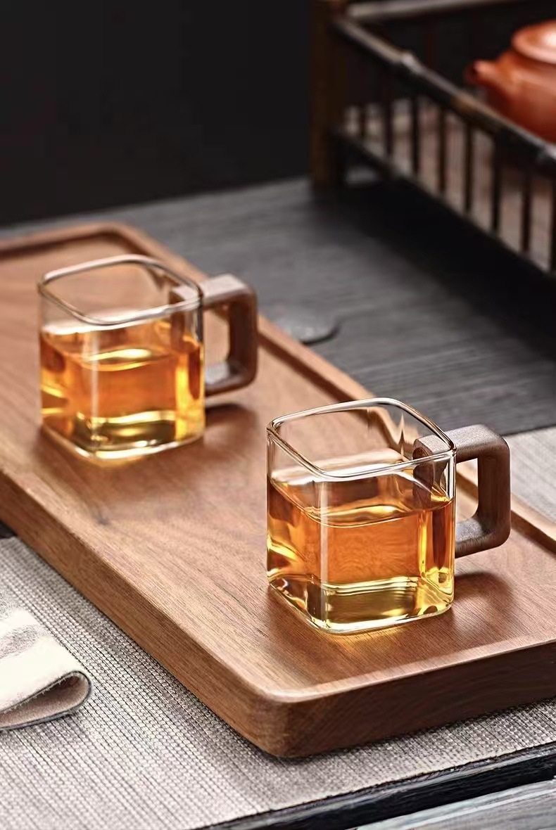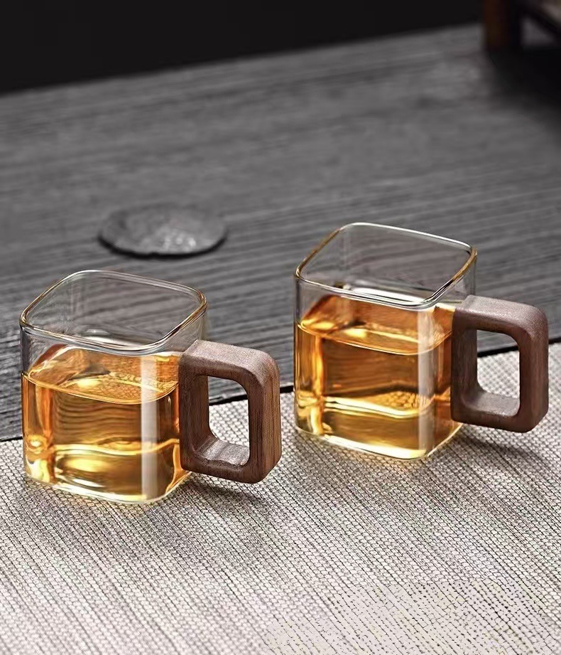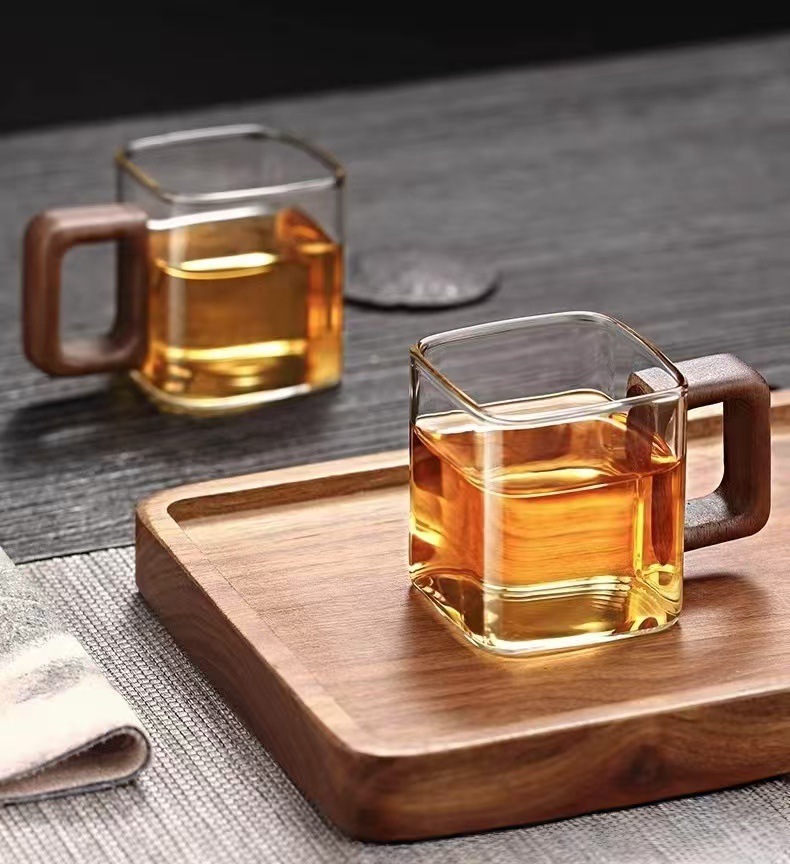 도매 고풍 유리 찻잔 공푸차 세트 사각형 일본식 휴대용 가정용품 티컵 투명 물컵