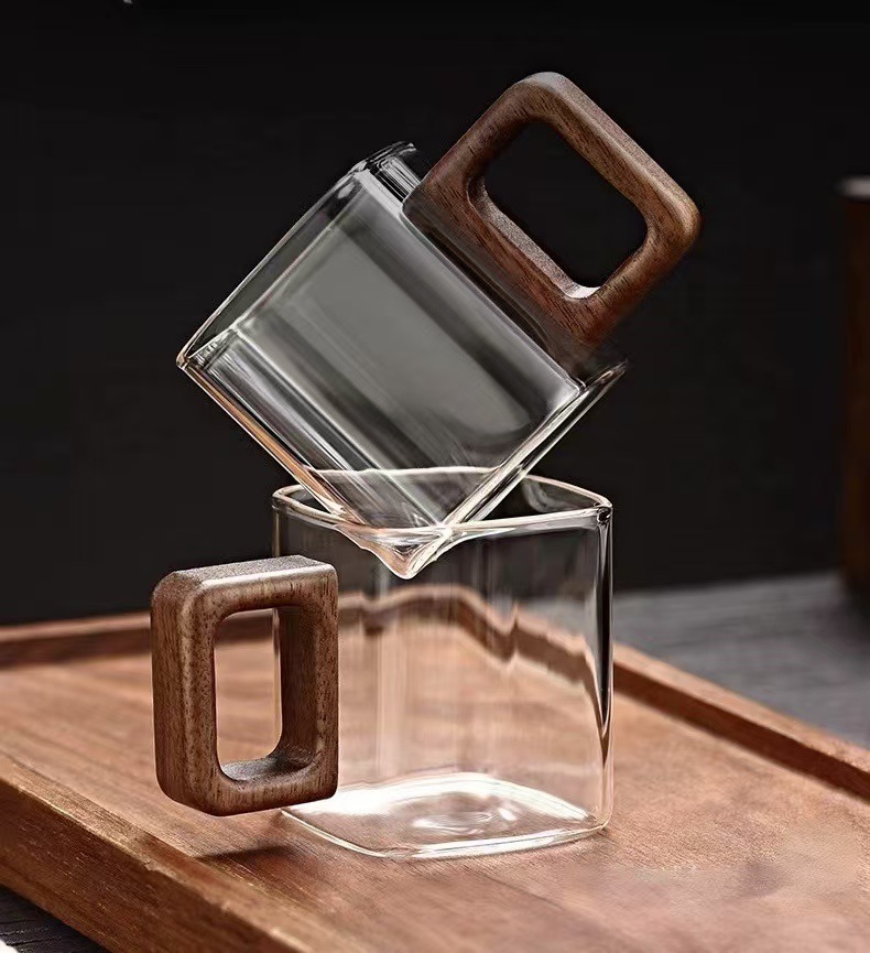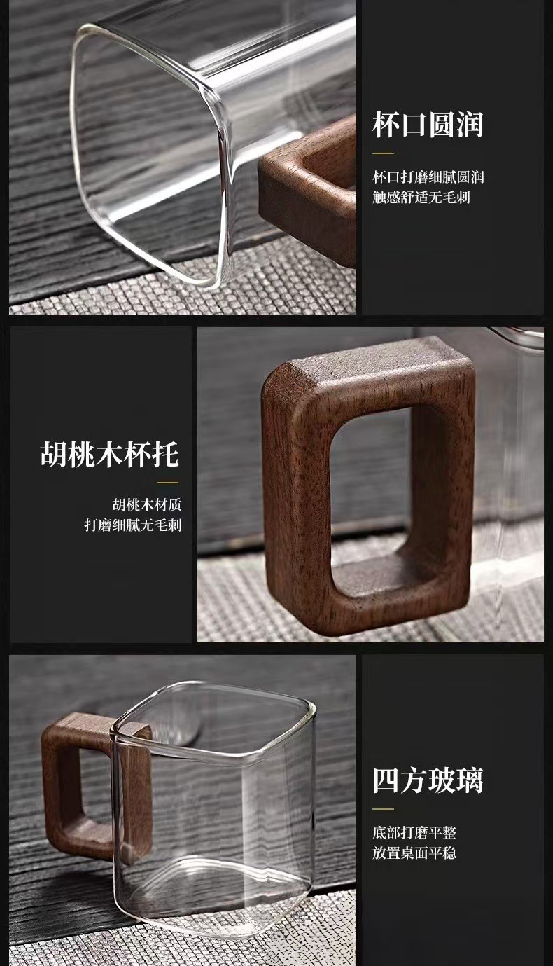 도매 고풍 유리 찻잔 공푸차 세트 사각형 일본식 휴대용 가정용품 티컵 투명 물컵스토어 가기