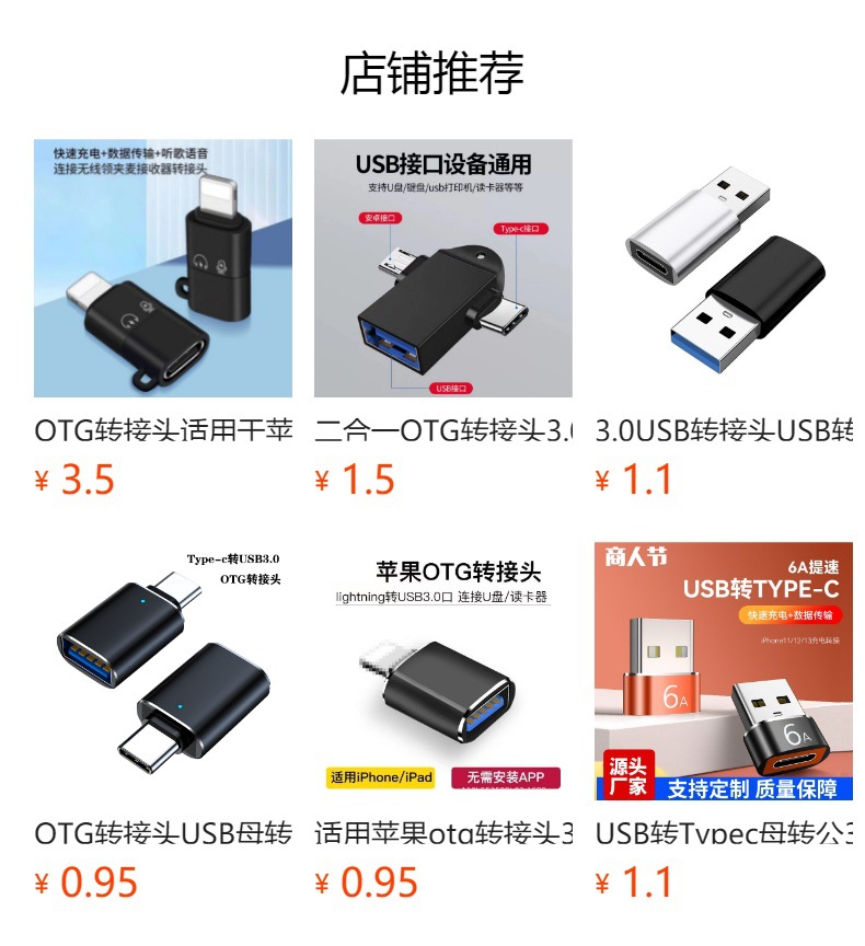 OTG 어댑터, 타입C(암) to USB(수) 휴대폰 어댑터, 노트북 헤드폰 연결 확장 도크, 차량용스토어 가기