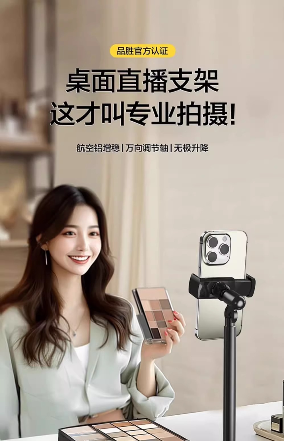 핀셩 휴대폰 거치대 2025년형 데스크탑 라이브 방송 높이 조절 셀카 촬영 가정용 다기능 휴대폰 거치대