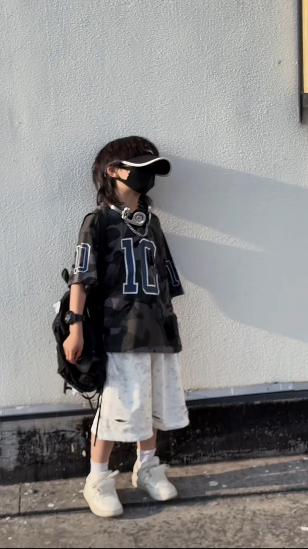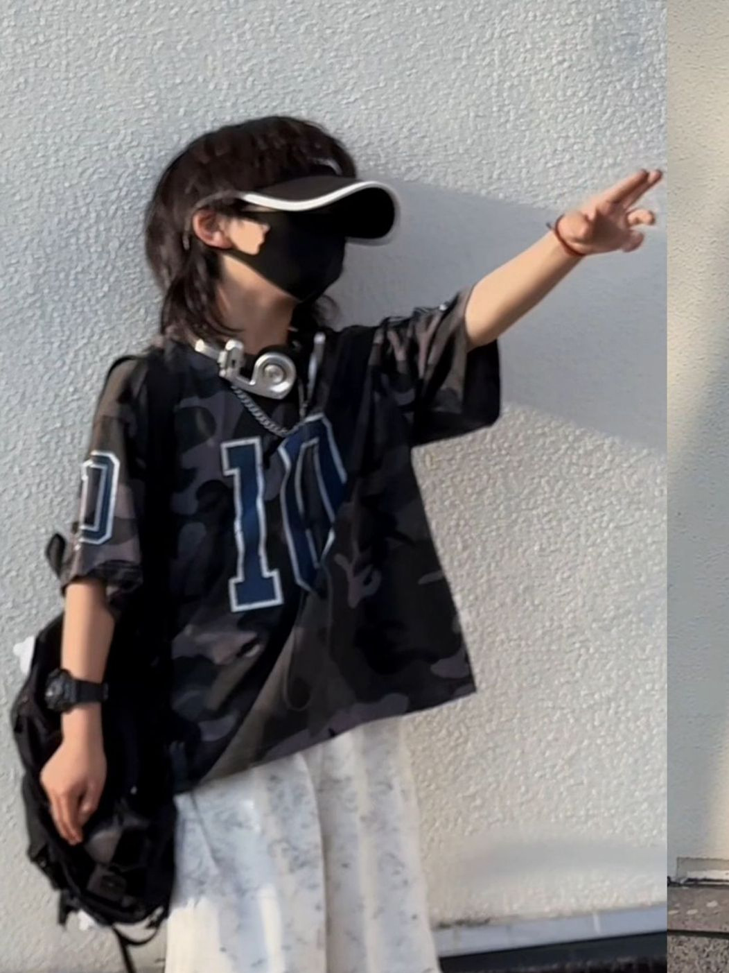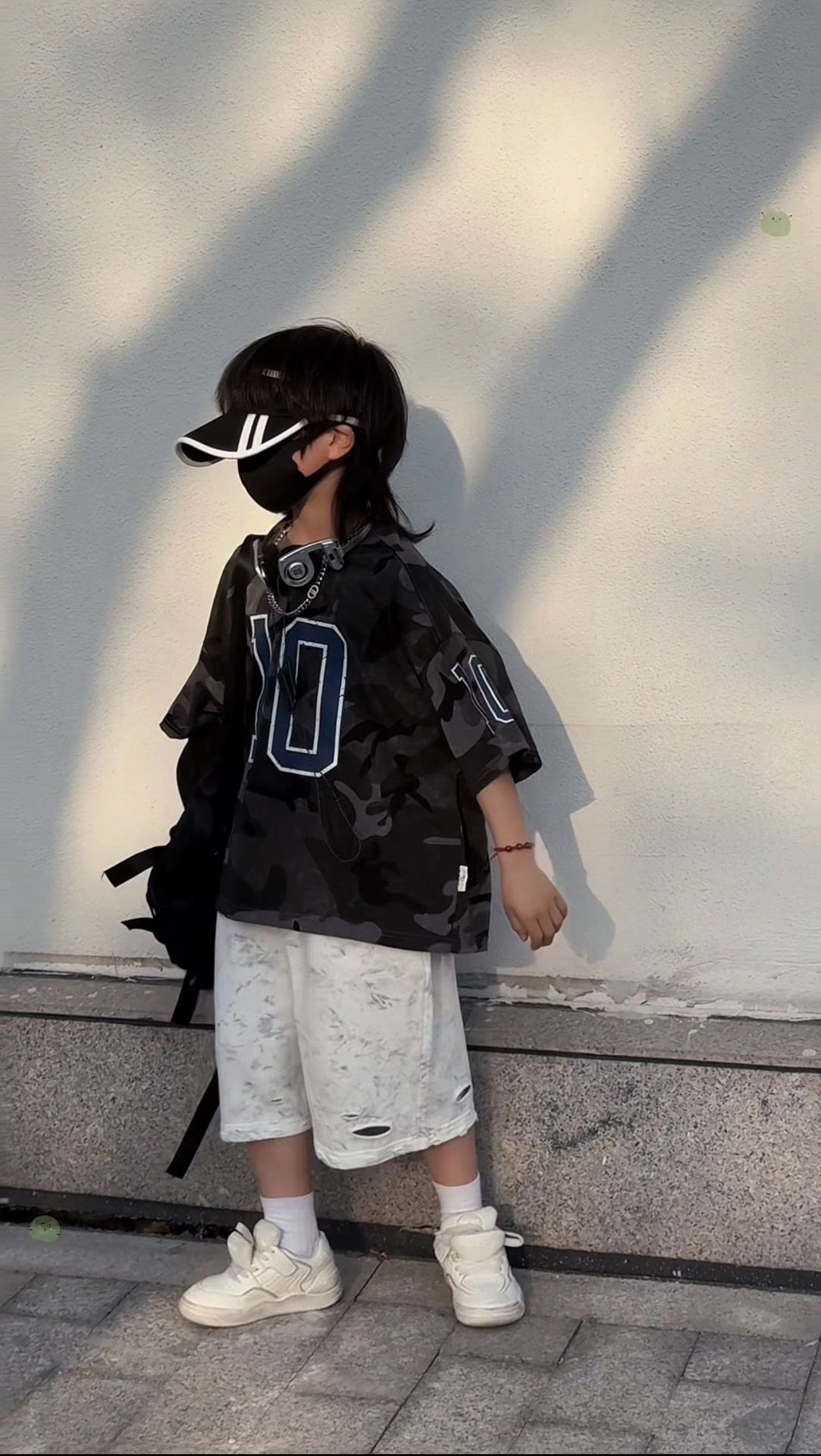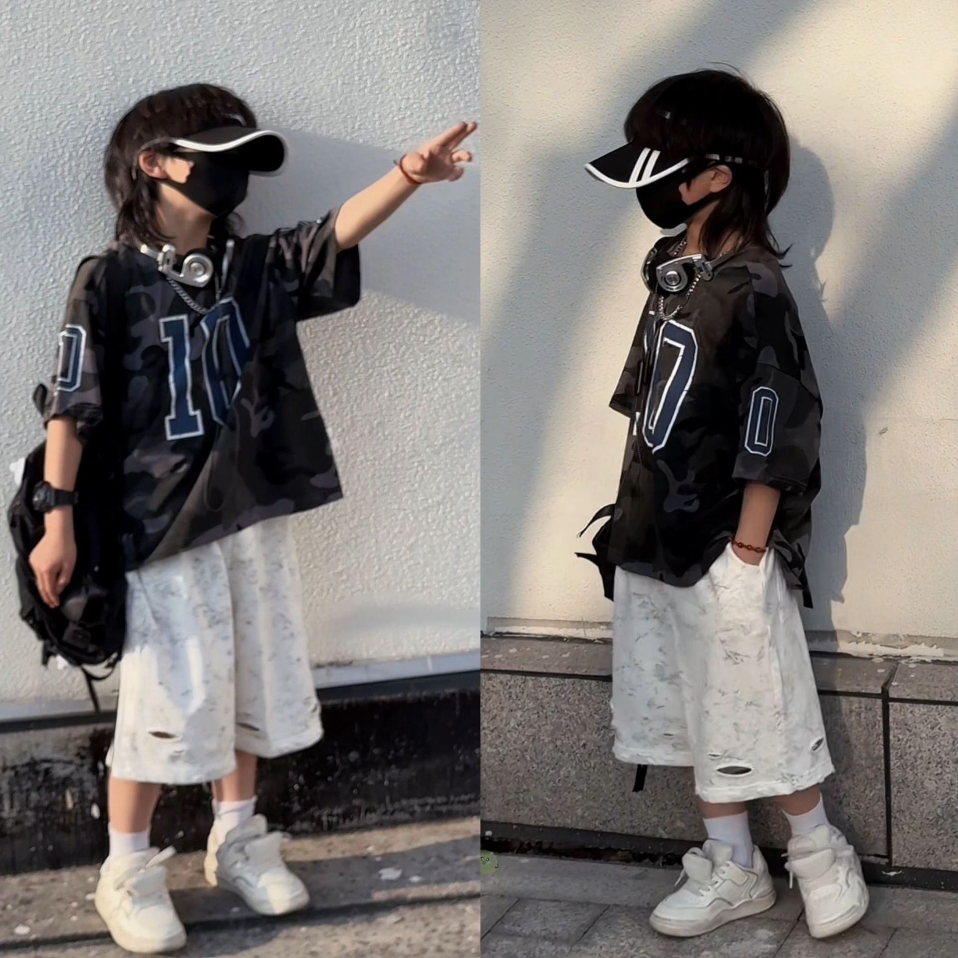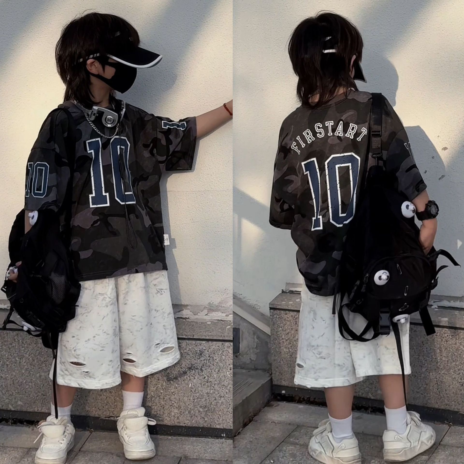 2025 어린이 신작 여름 위장 반팔 티셔츠 트렌디하고 쿨한 루즈 스타일 아메리칸 레트로 프린트 탑 반소매