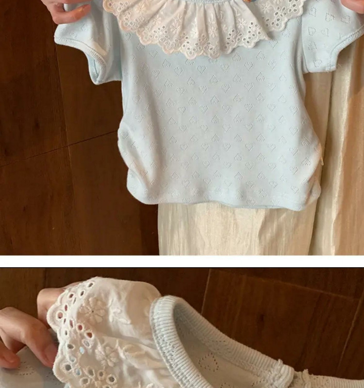 여자 반팔 레이스 티셔츠 2025 여름 새 소녀 아기 유행 캐주얼 올 매치 옷깃 탑