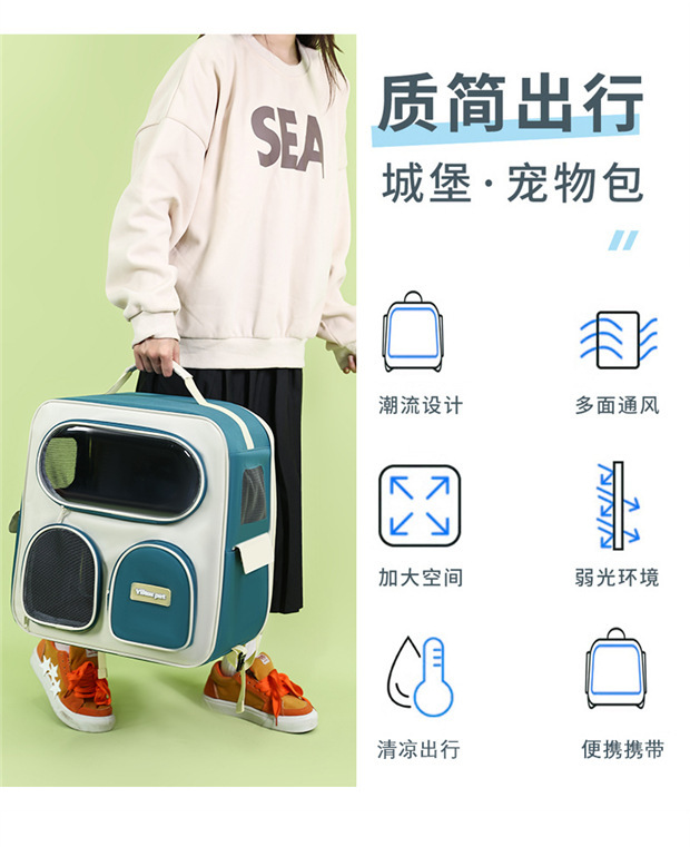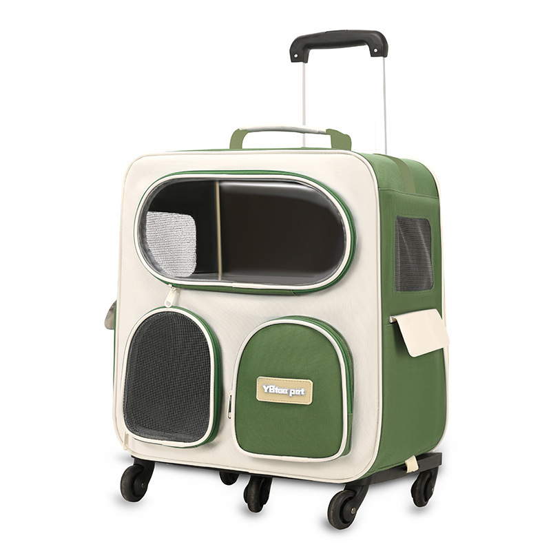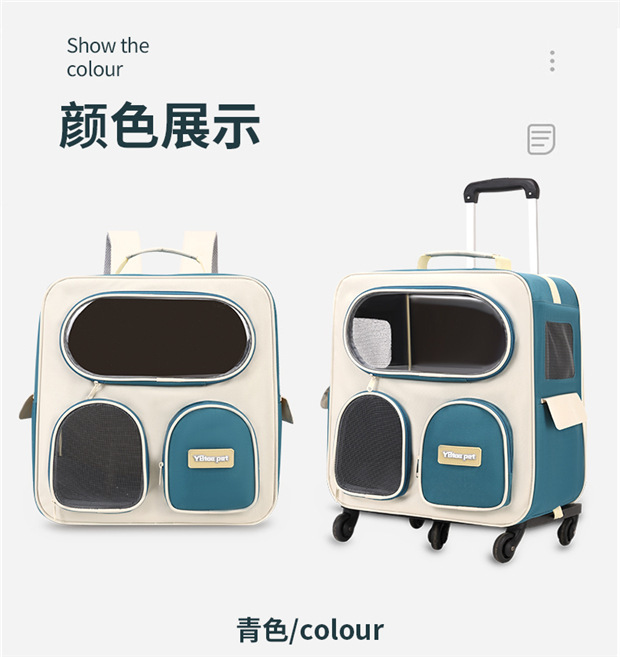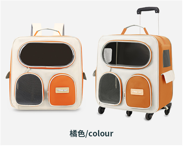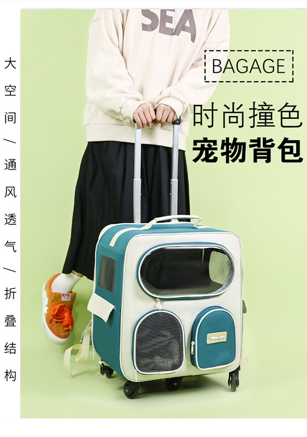고양이 가방, 통기성 파노라마 풀업 트롤리 애완 동물 용품, 대용량 고양이 및 개 야외 여행 휴대용 고양이 가방, 국경 간스토어 가기