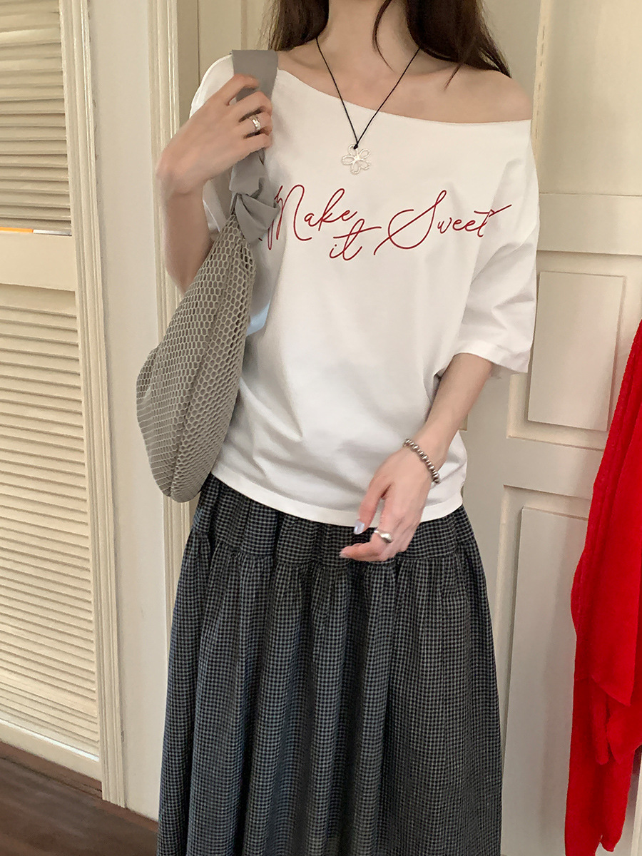 레이지 스타일 오프숄더 반팔 여성 티셔츠 2026년 여름 신상 한국 스타일 루즈핏 슬리밍 다용도 캐주얼 화이트 탑스토어 가기