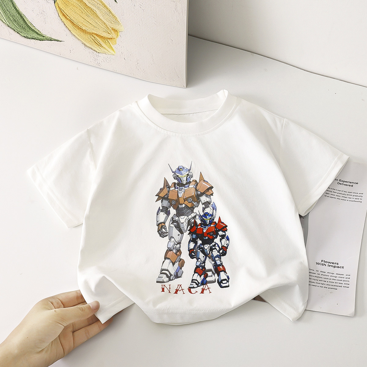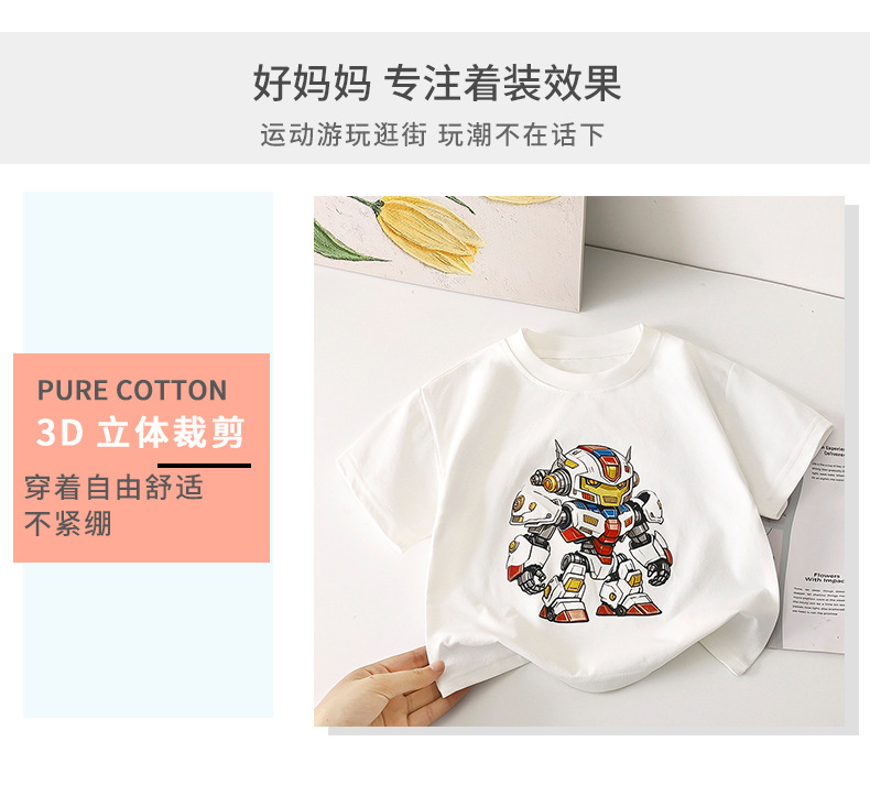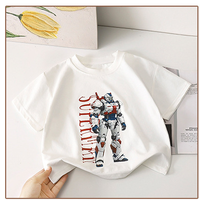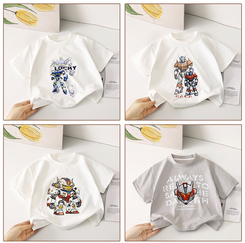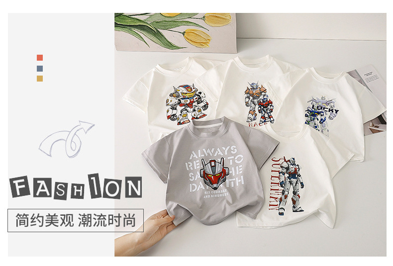어린이 반팔 여름 새 티셔츠 유행 소년 메카 패턴 얇은 소년의 최고 여름 느슨한 아동복