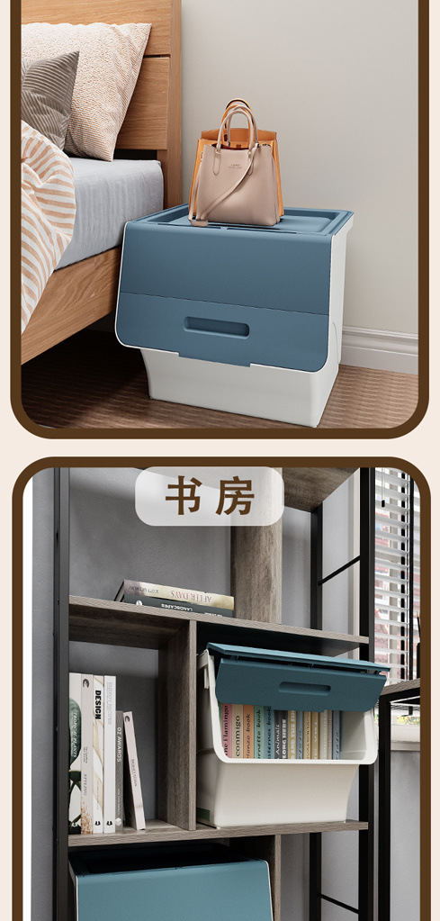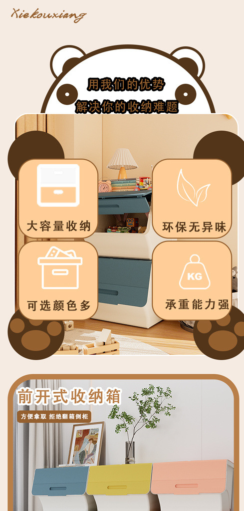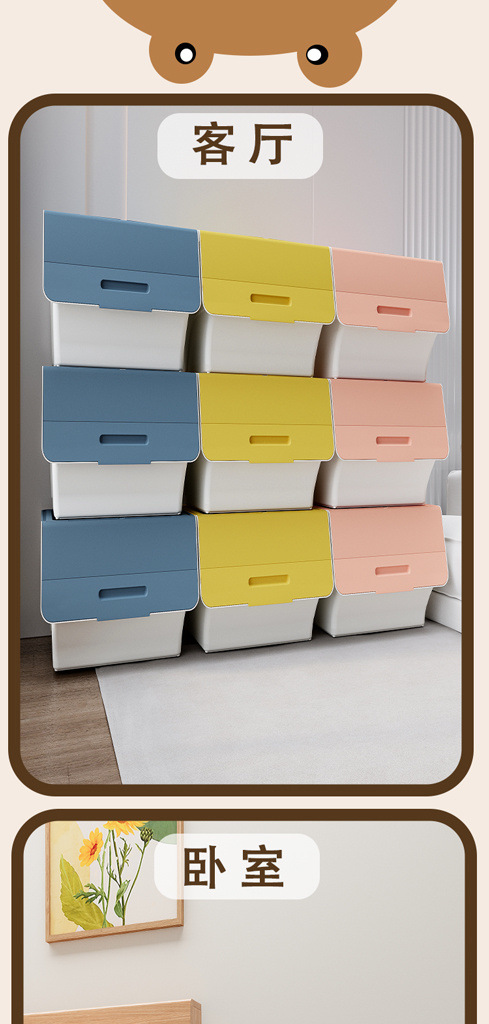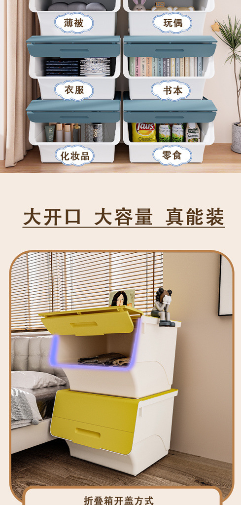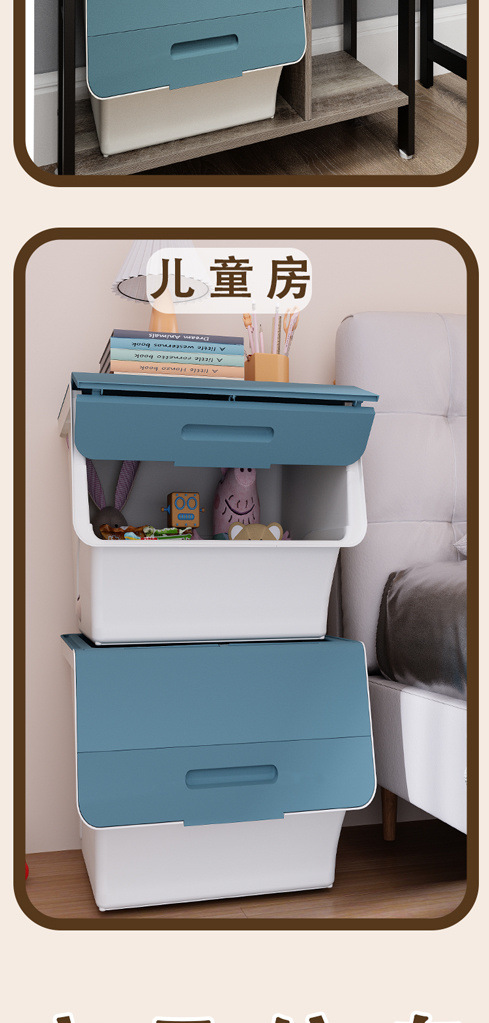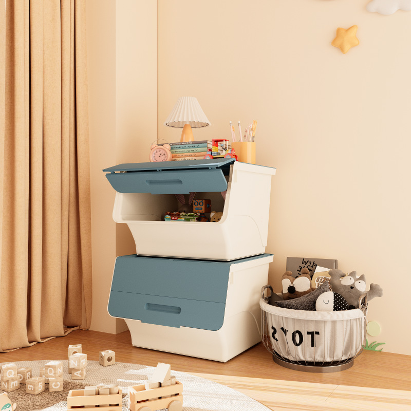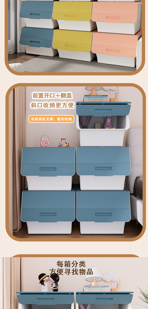 어린이 전면 개방형 보관함 장난감 책 간식 옷 잡다한 보관함 학교 경사 플립 커버