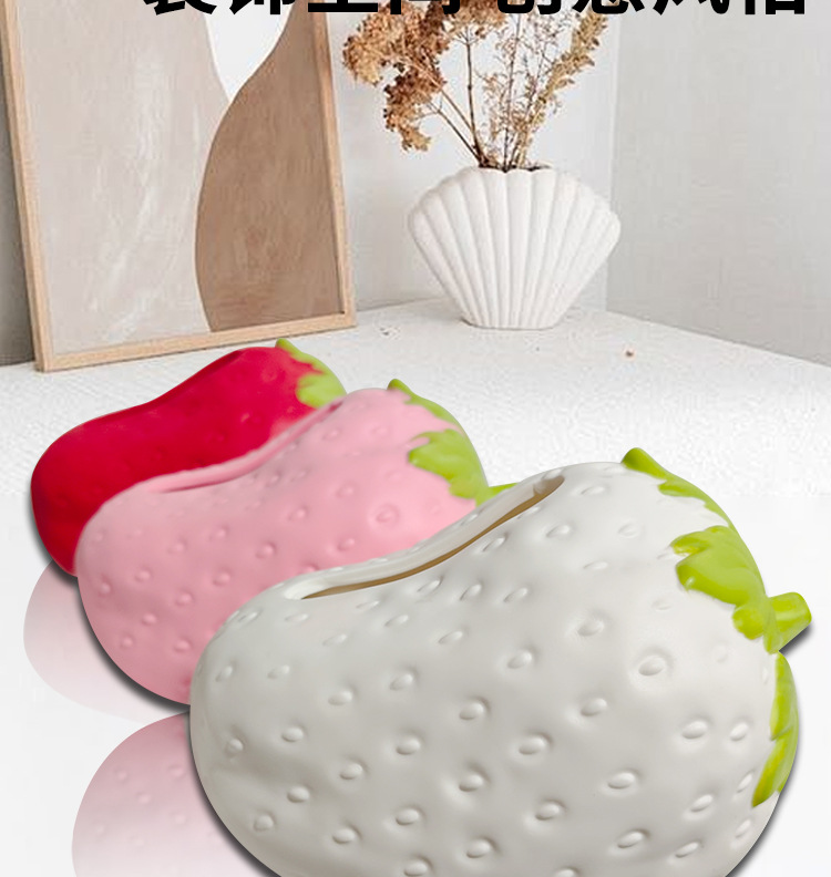 비닐 딸기 거실 커피 테이블 종이 상자 시뮬레이션 과일 티슈 상자 핑크 장식 장식품 창의적이고 멋진