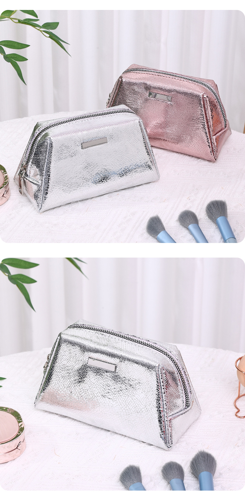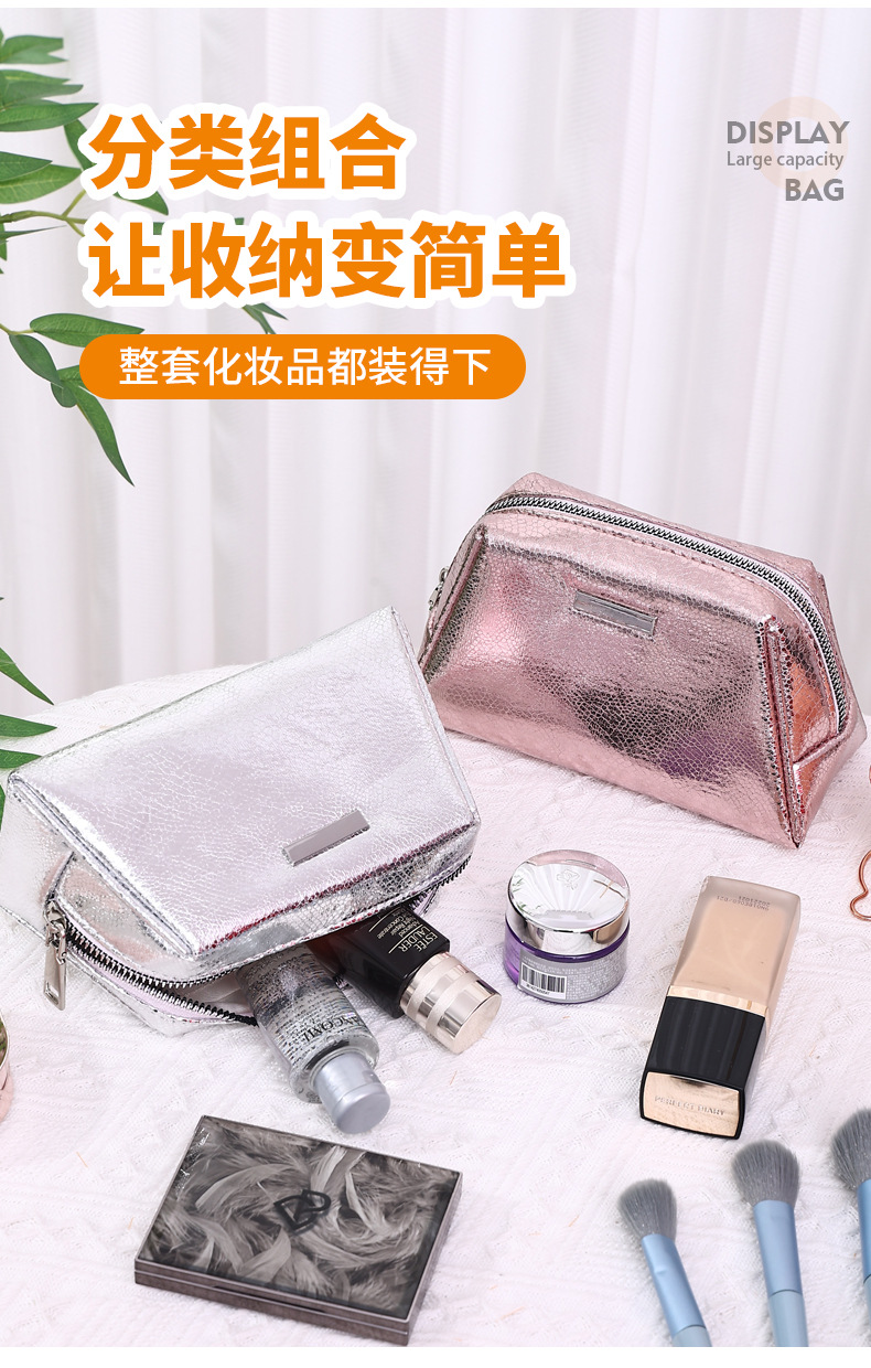 신상품 크로스보더 반짝이 PU 핸드백 화장품 가방 휴대용 여성 여행 세면도구 가방 화장품 수납 가방 스팽글스토어 가기