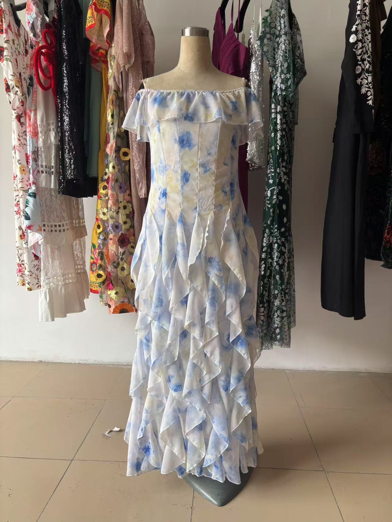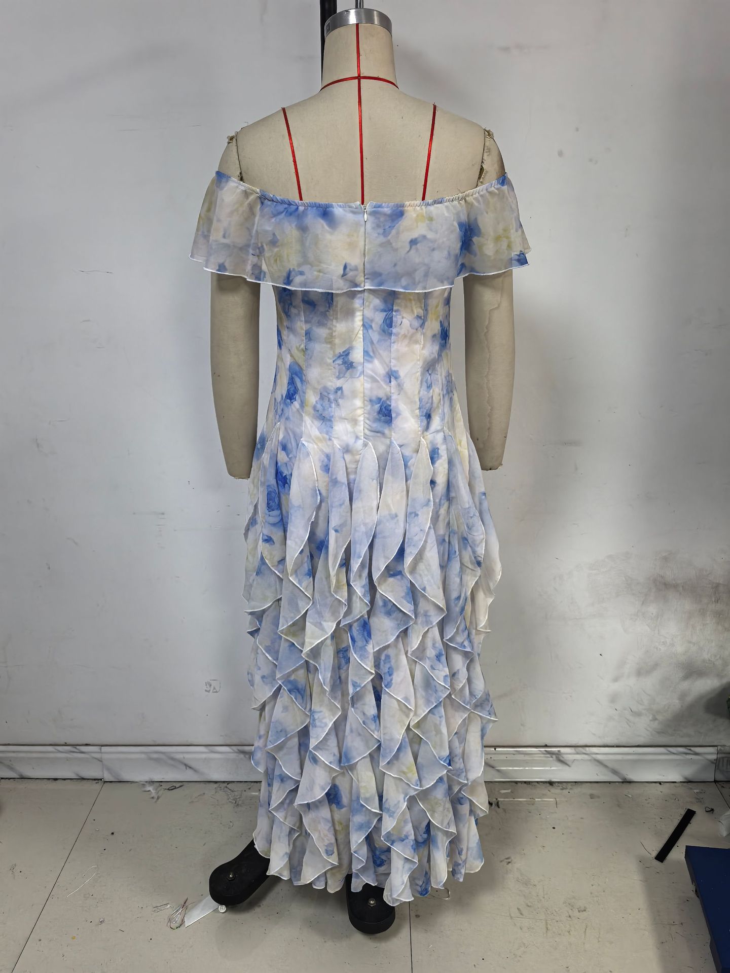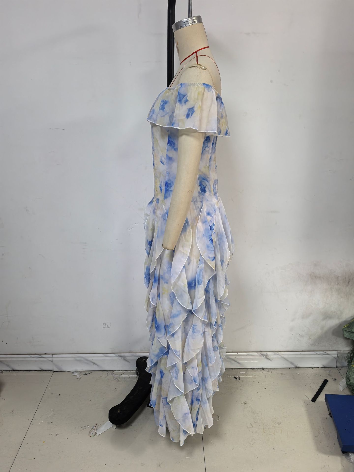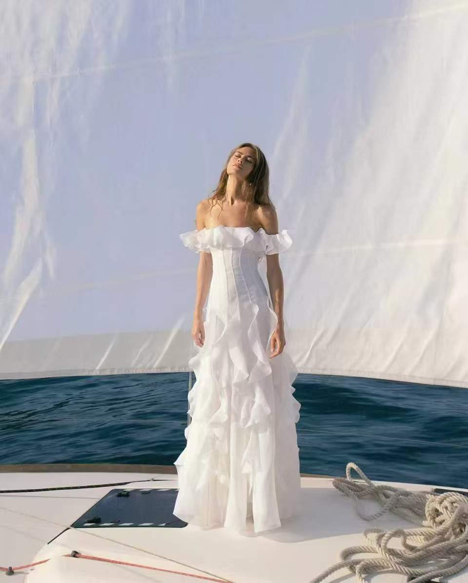 해변 리조트 스타일 서스펜더 스커트, 프렌치 러플 비치 드레스, 분위기 있는 롱 스커트, 우아한 요정 스타일