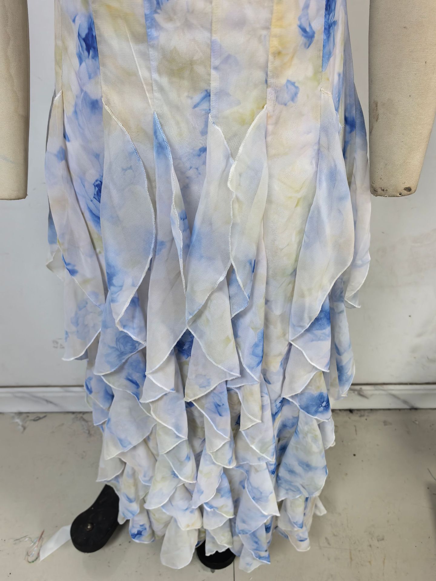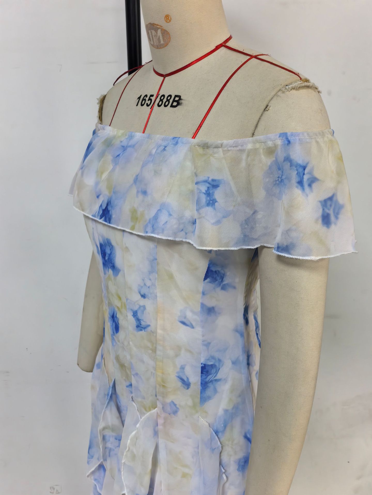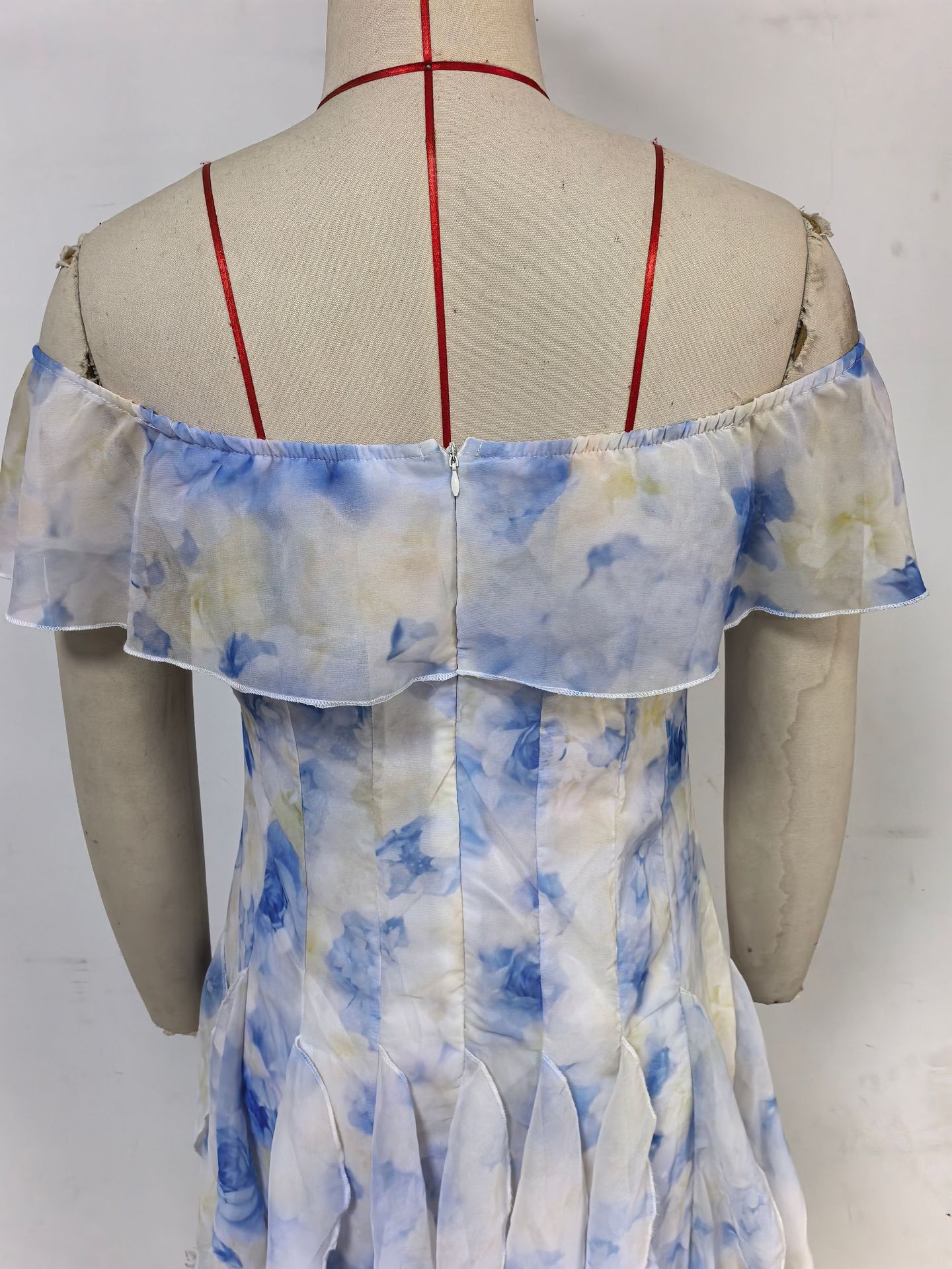해변 리조트 스타일 서스펜더 스커트, 프렌치 러플 비치 드레스, 분위기 있는 롱 스커트, 우아한 요정 스타일