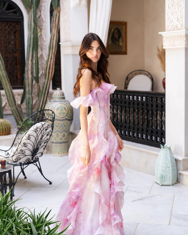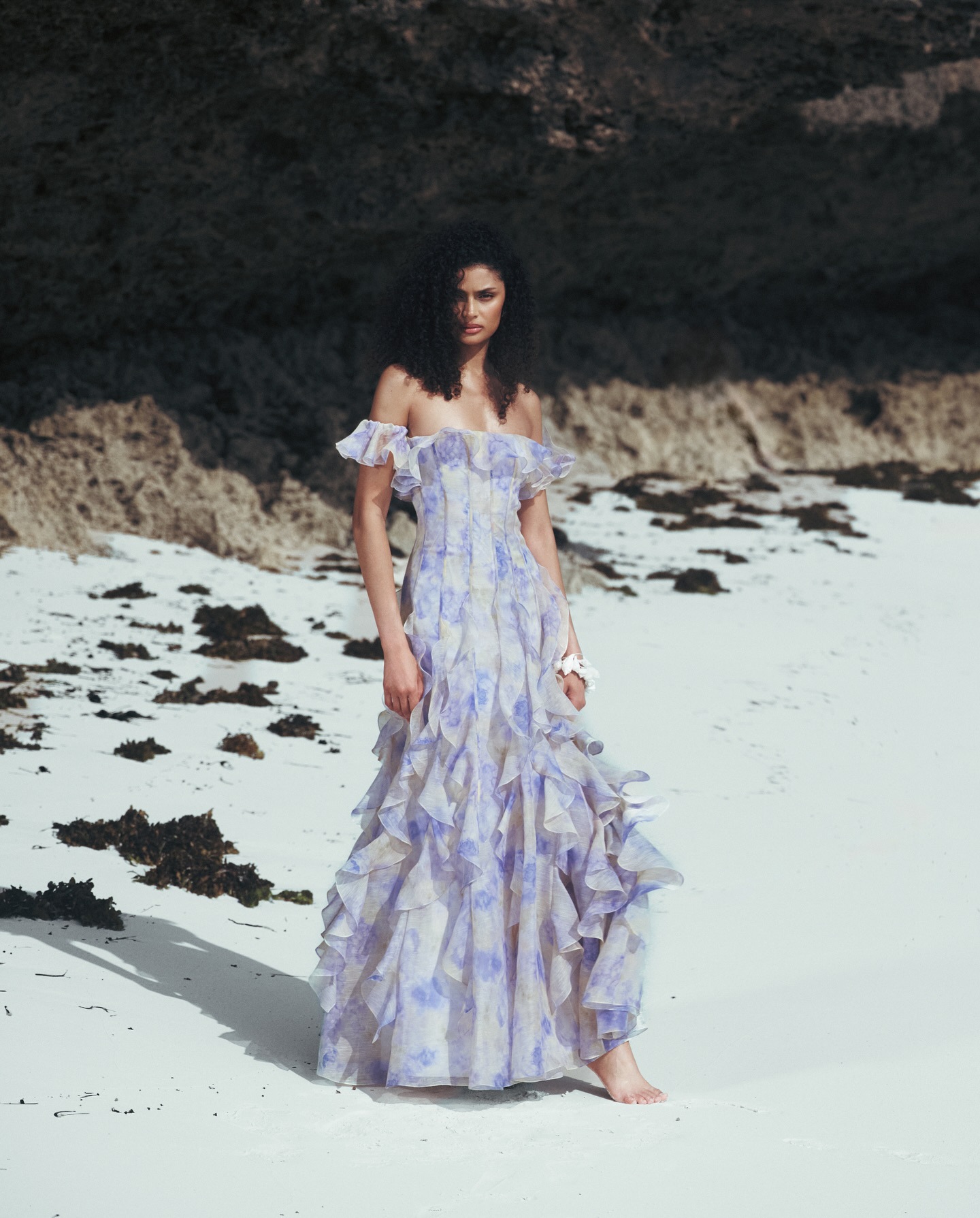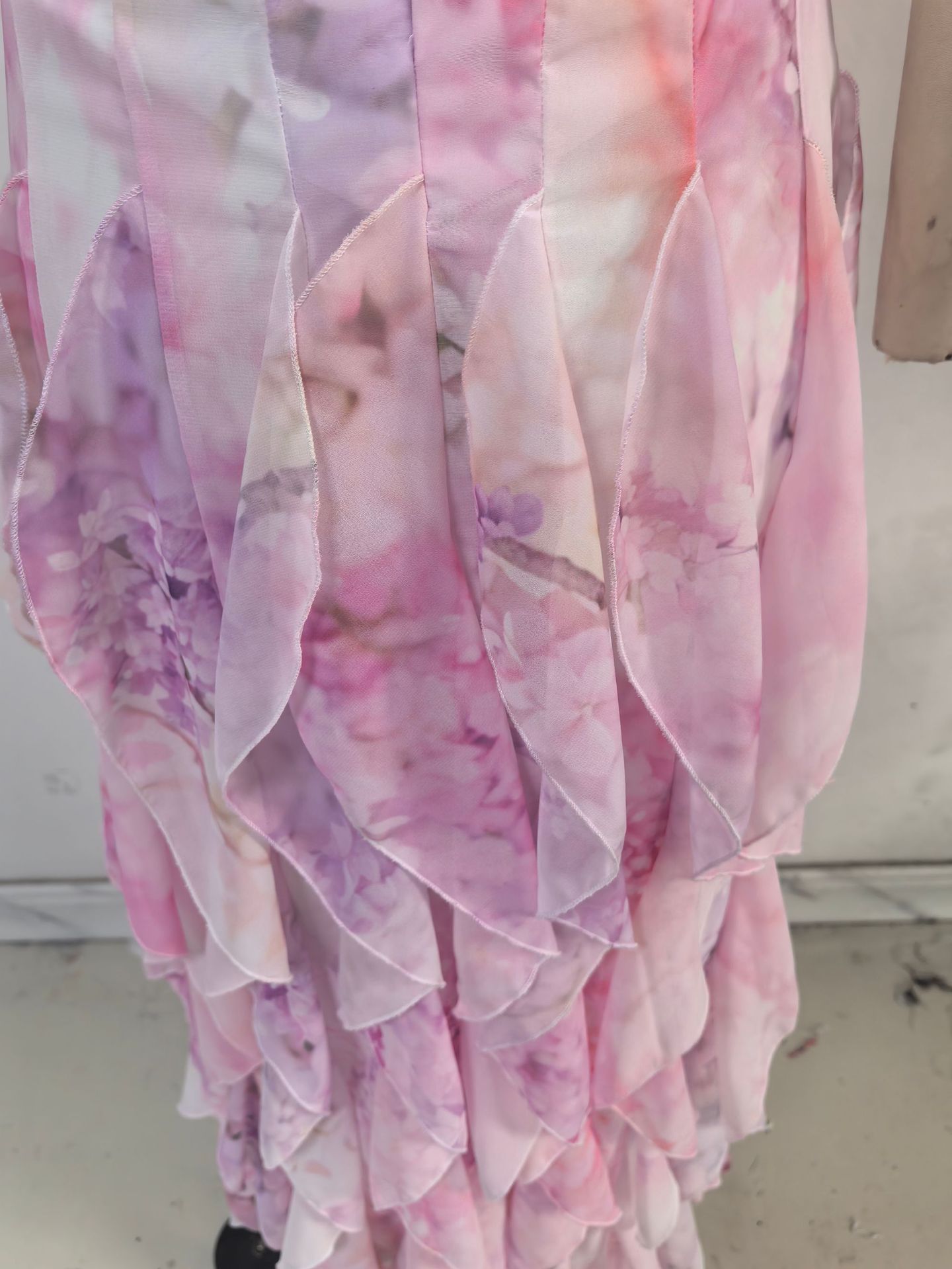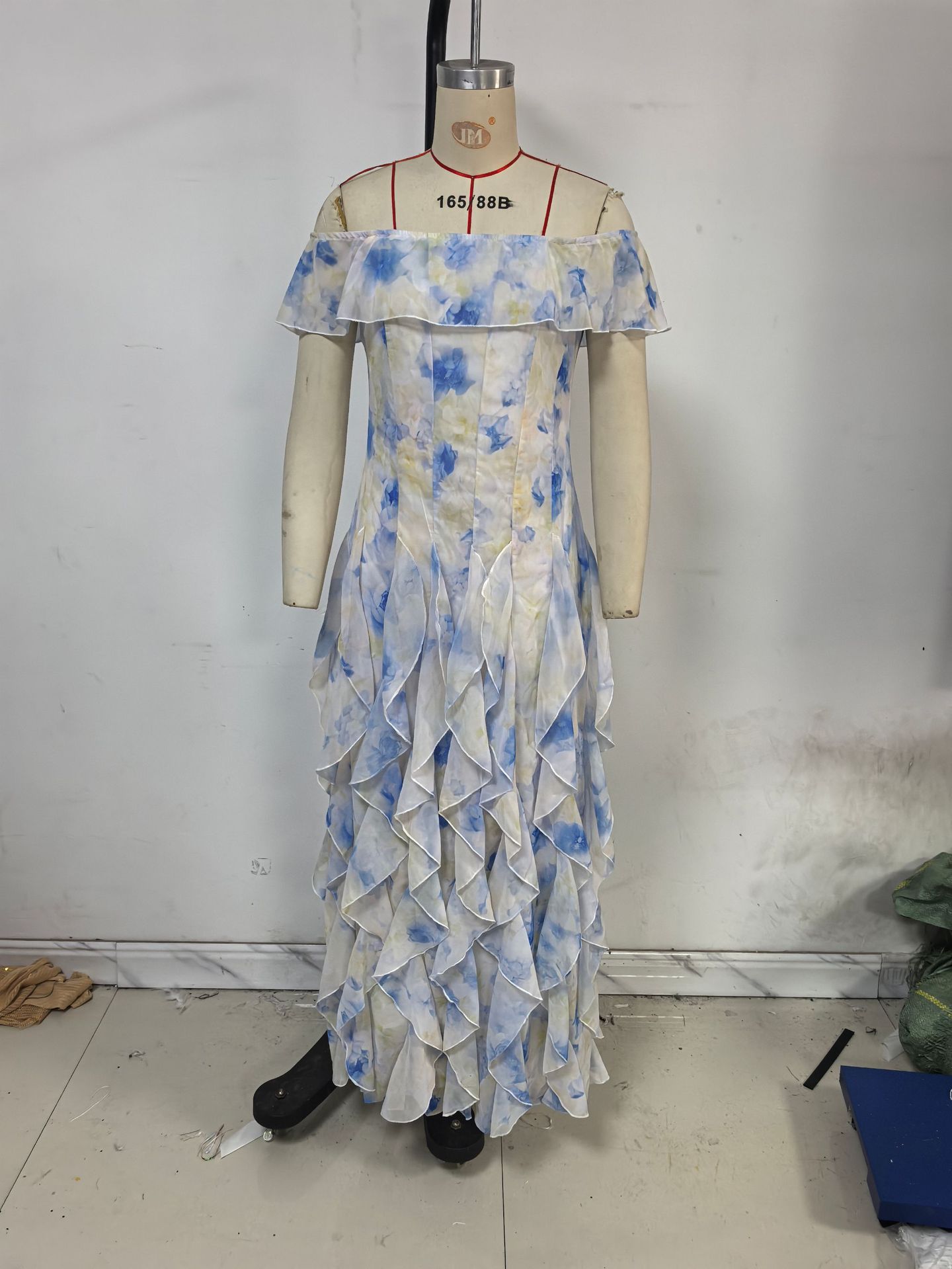 해변 리조트 스타일 서스펜더 스커트, 프렌치 러플 비치 드레스, 분위기 있는 롱 스커트, 우아한 요정 스타일