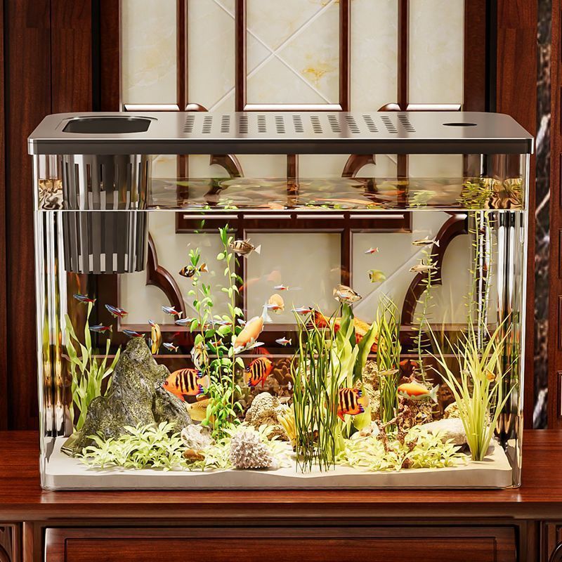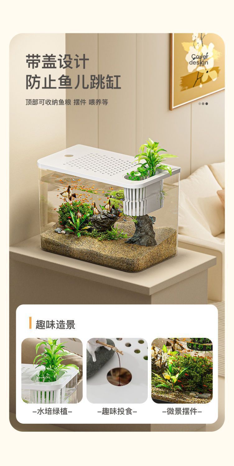 물고기 탱크 생태 수족관 플라스틱 금붕어 탱크 커버 슈퍼 투명 거실 럭셔리 조경 낙하 방지 및 낙하 방지 데스크탑 탱크스토어 가기