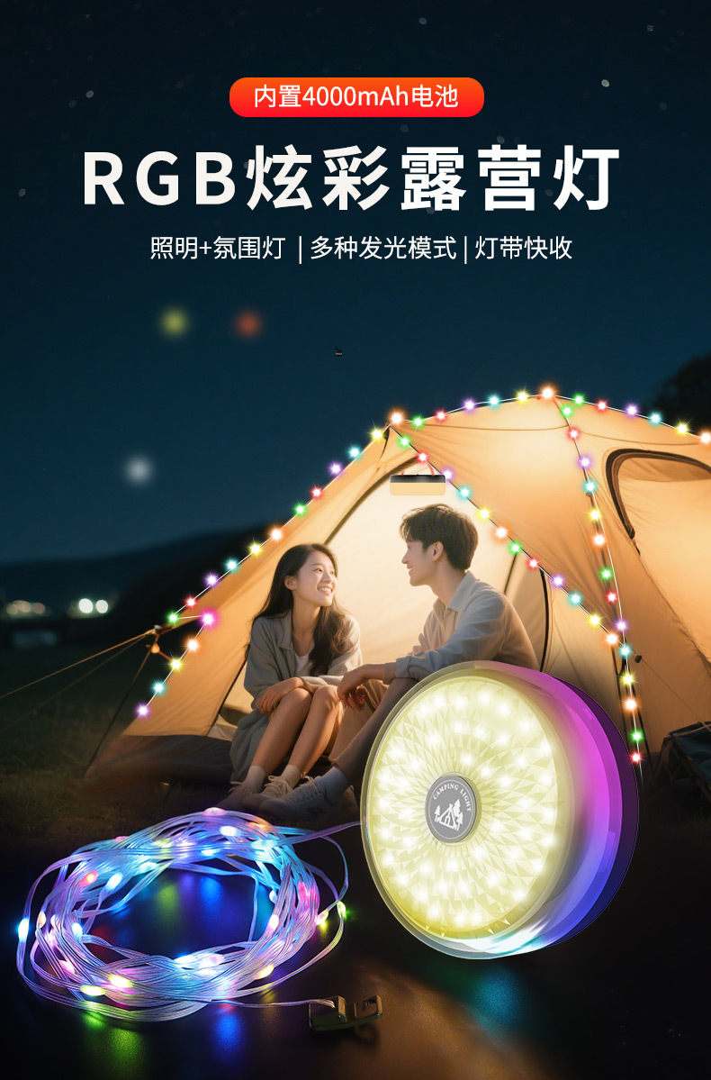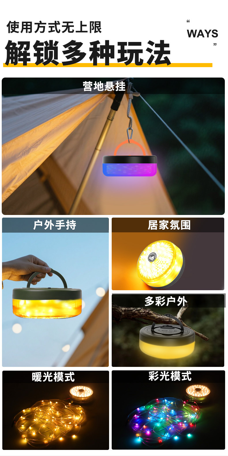 야외 캠핑 램프 휴대용 컬 램프 방수 스토리지 캠핑 램프 끈 텐트 비상 다채로운 분위기 램프 조명