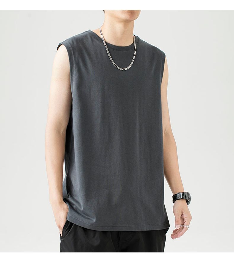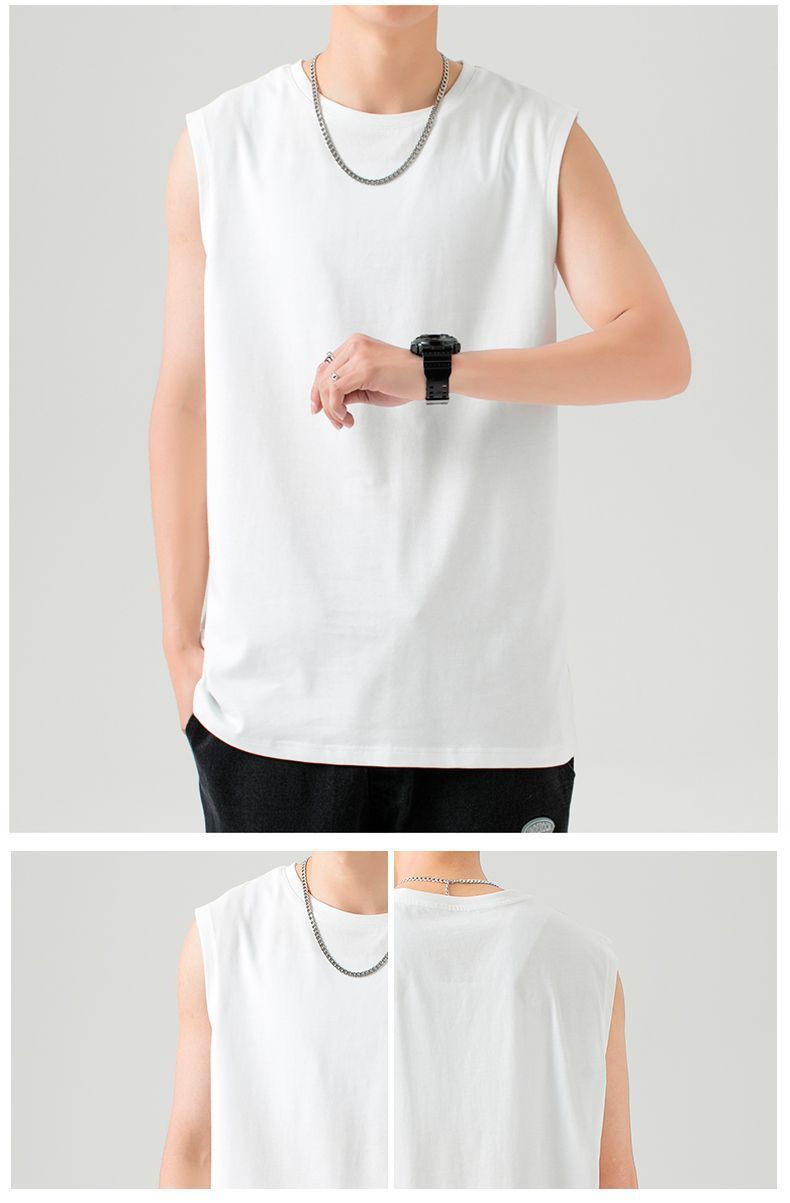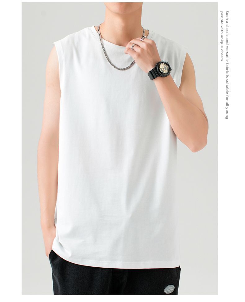 헤비웨이트 민소매 남성용 2026 순면 조끼 남성용 한국 스타일 트렌디 베이직 이너웨어 무지 단색 캐주얼 민소매 티셔츠