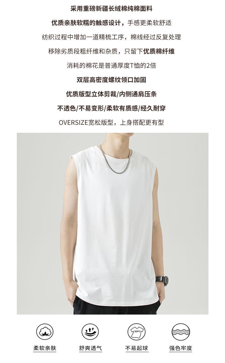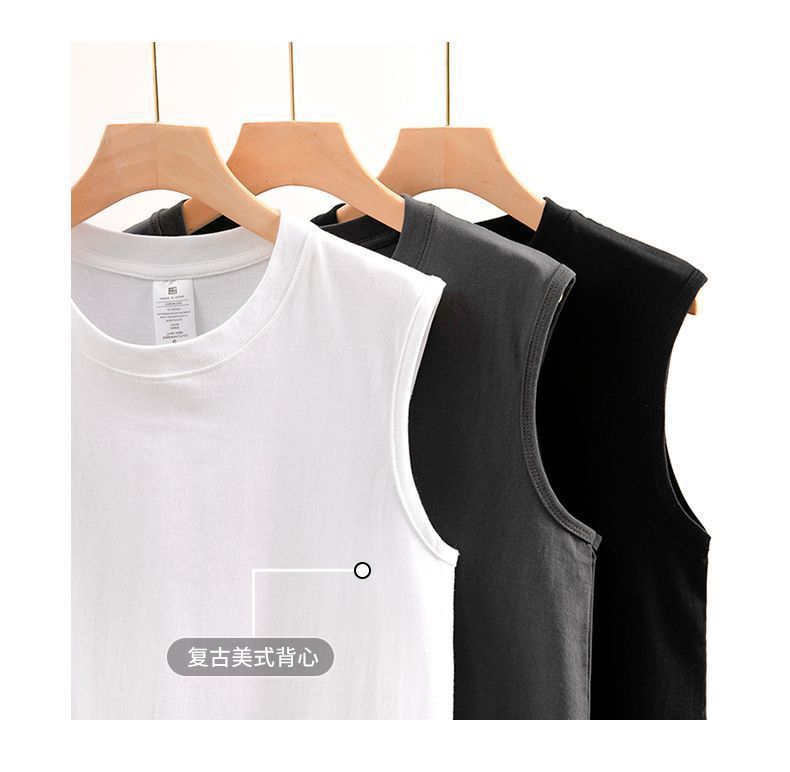 헤비웨이트 민소매 남성용 2026 순면 조끼 남성용 한국 스타일 트렌디 베이직 이너웨어 무지 단색 캐주얼 민소매 티셔츠스토어 가기