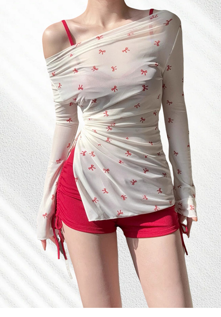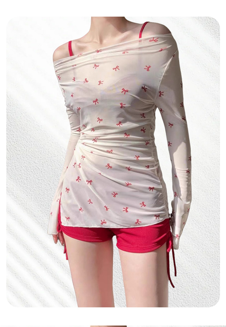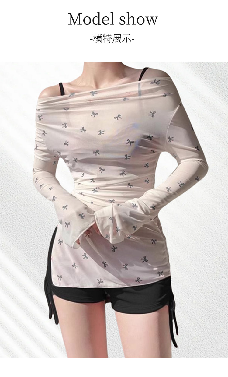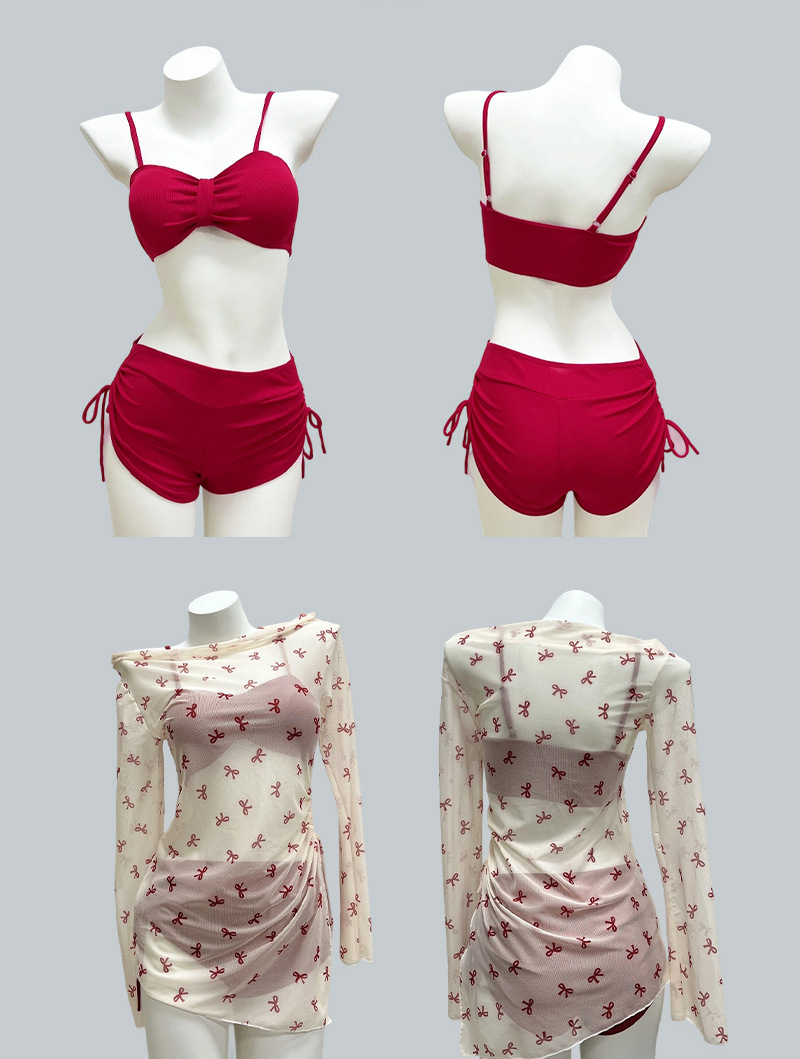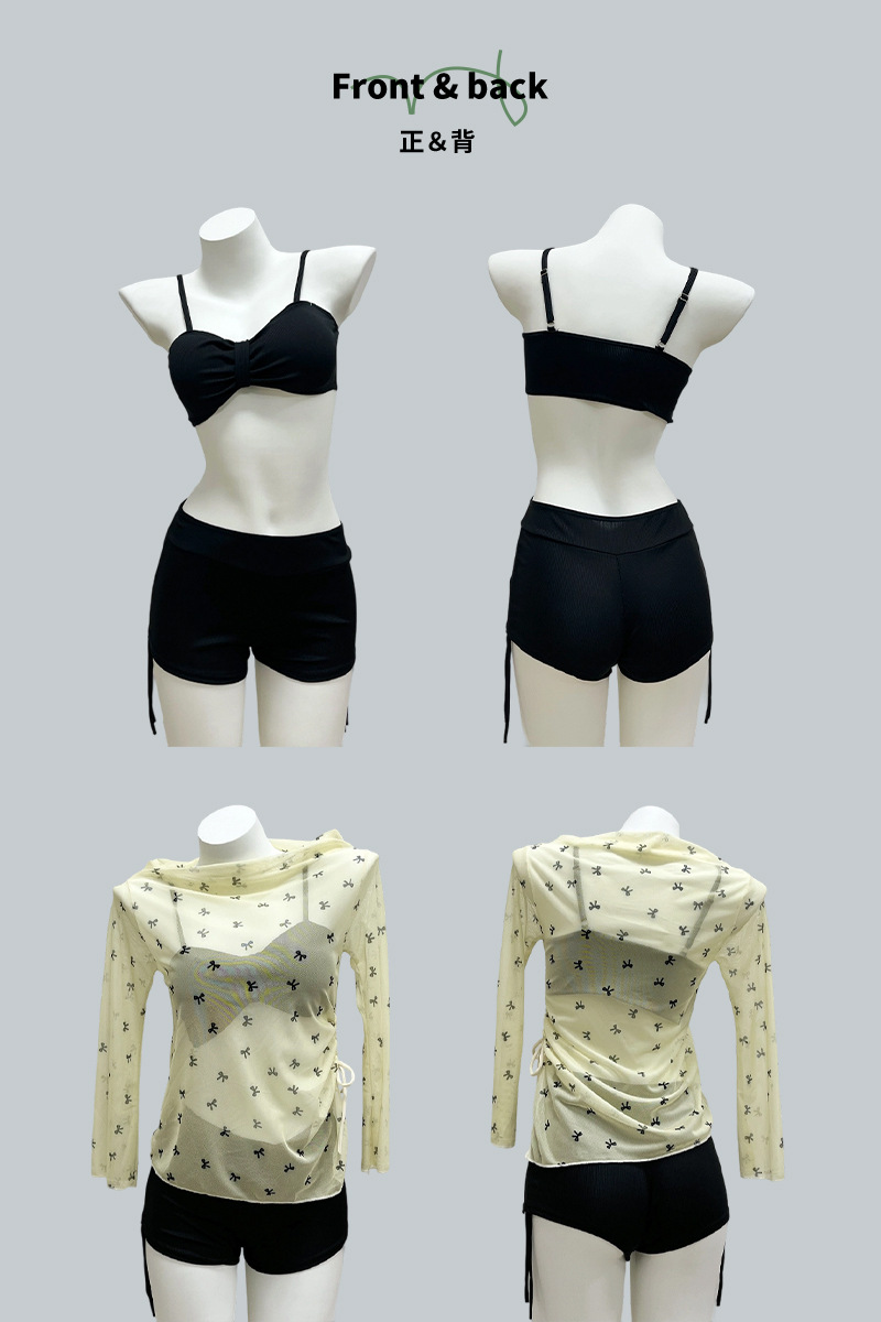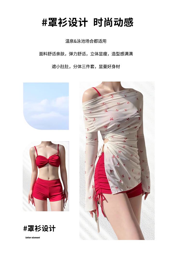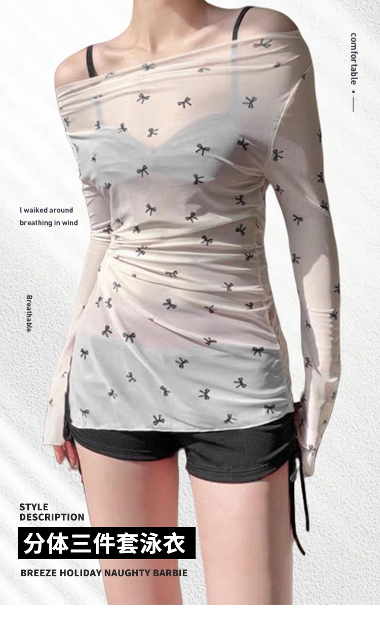 2025 새로운 수영복 여성 순수한 욕망 스타일 긴팔 자외선 차단 블라우스 홀터넥 비키니 스플릿 스트랩 수영복스토어 가기