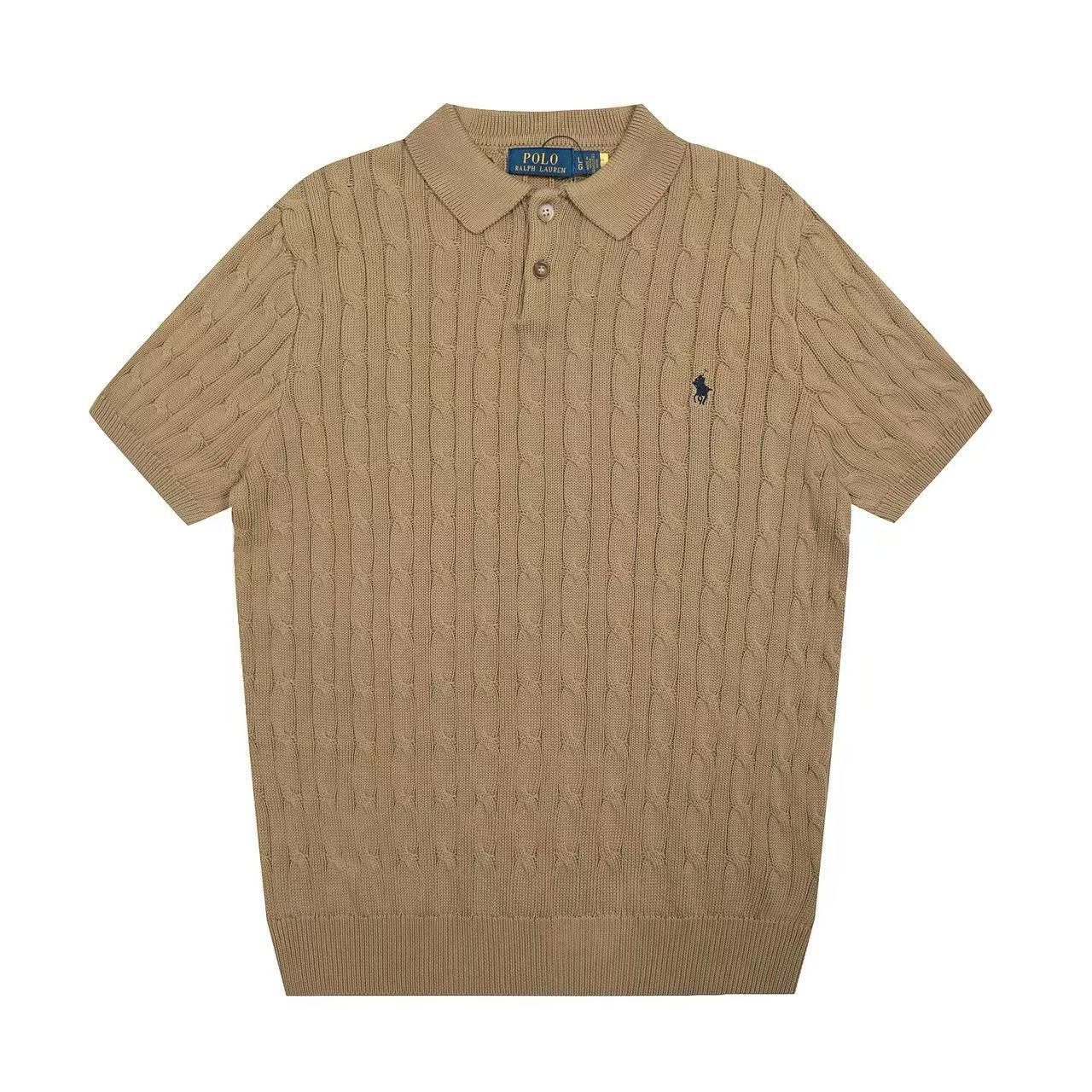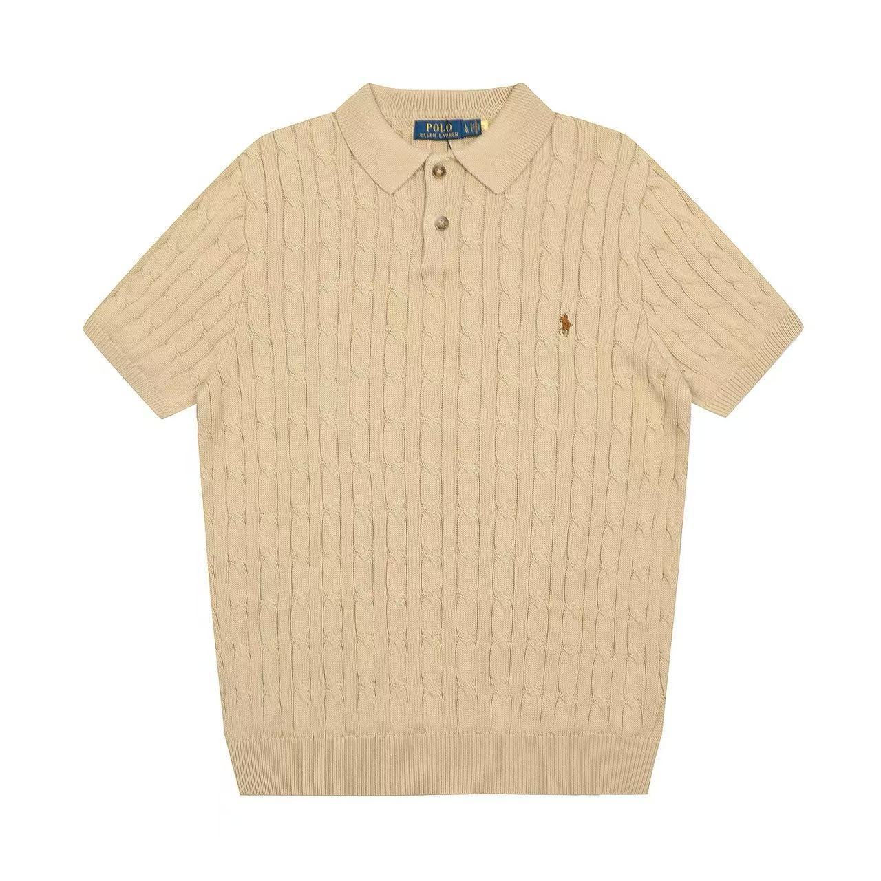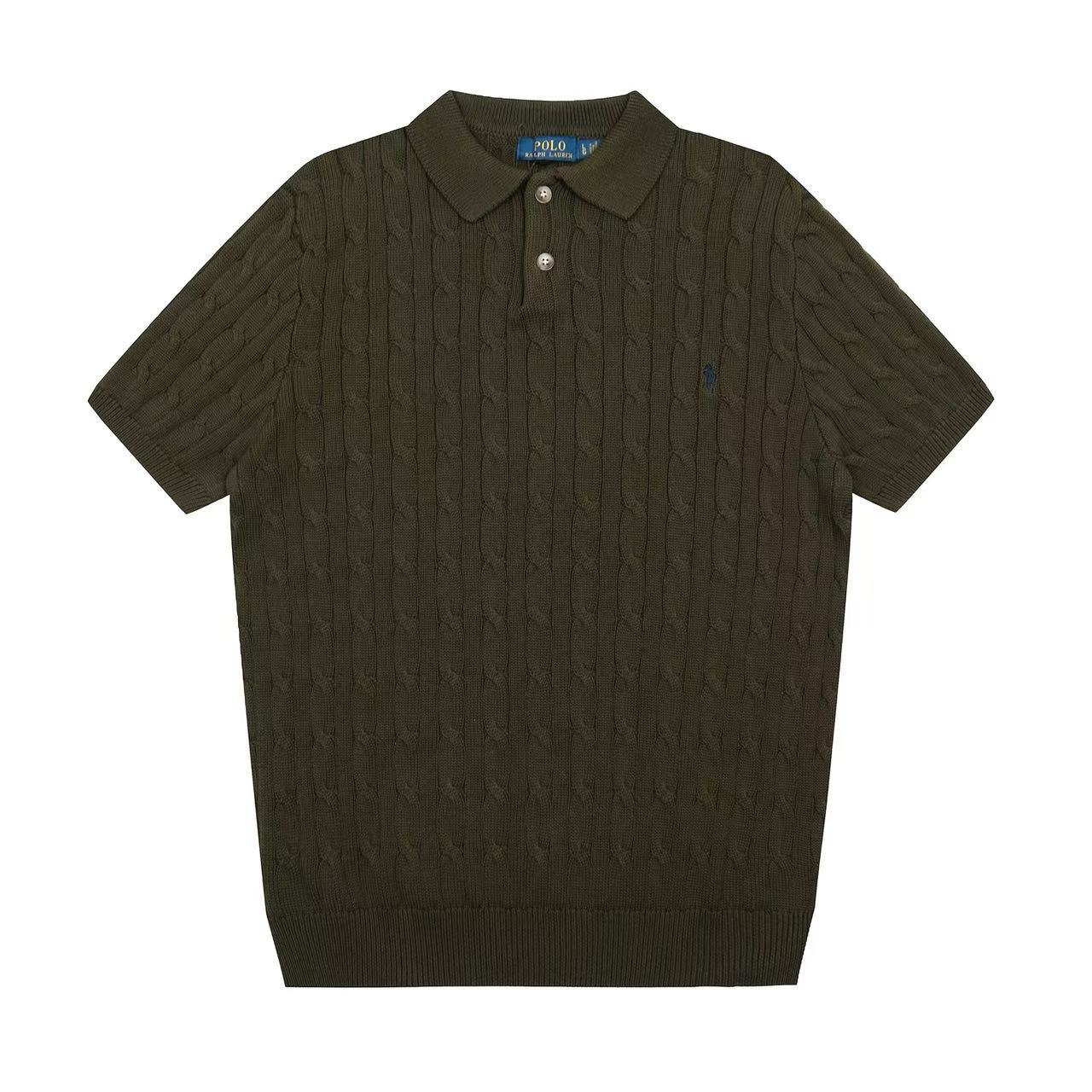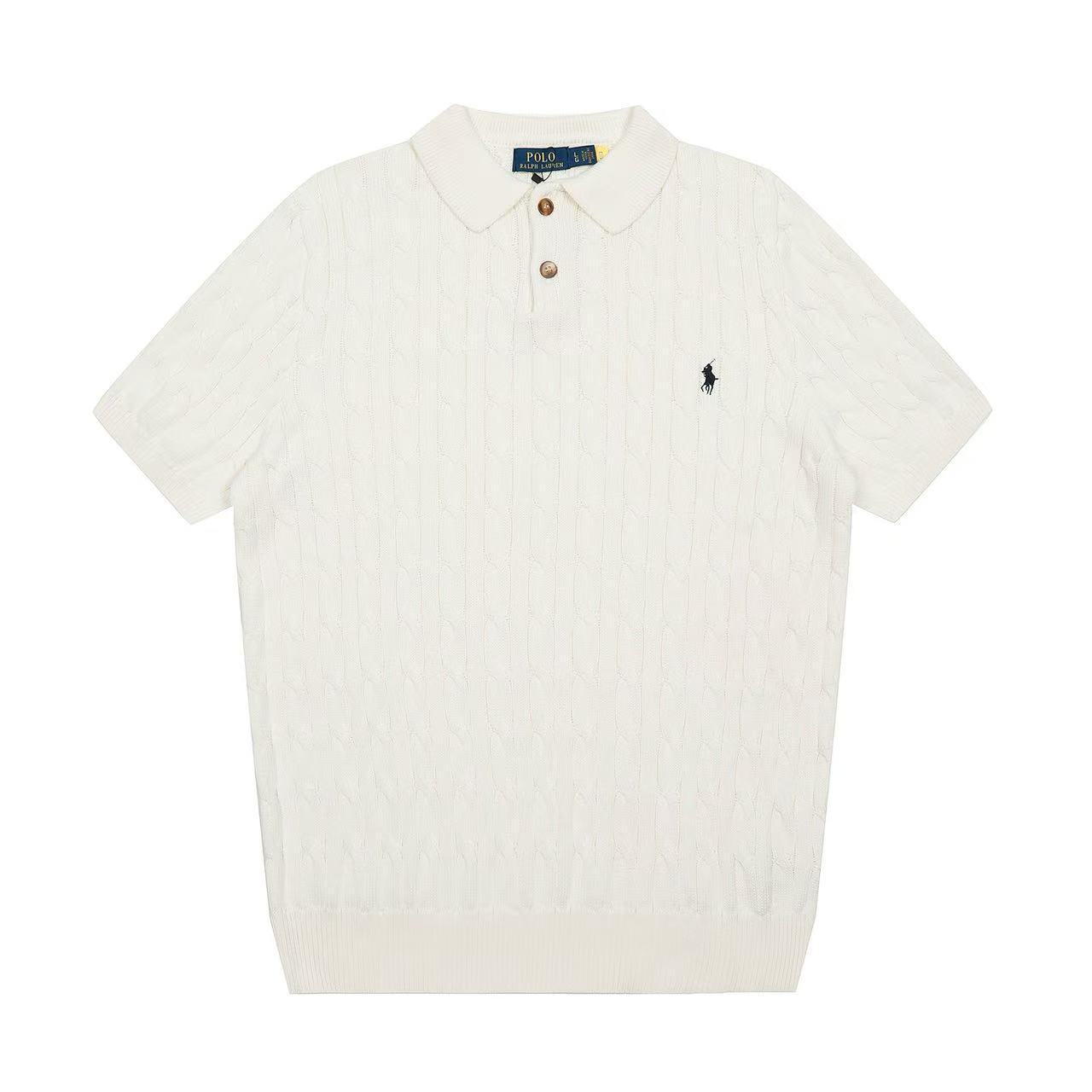 스캔 가능한 QR코드가 있는 RL 랄프 로렌 말 로고 자수 POLO 반팔 니트웨어, 꼬임 카라, 심플한 남성용 티셔츠