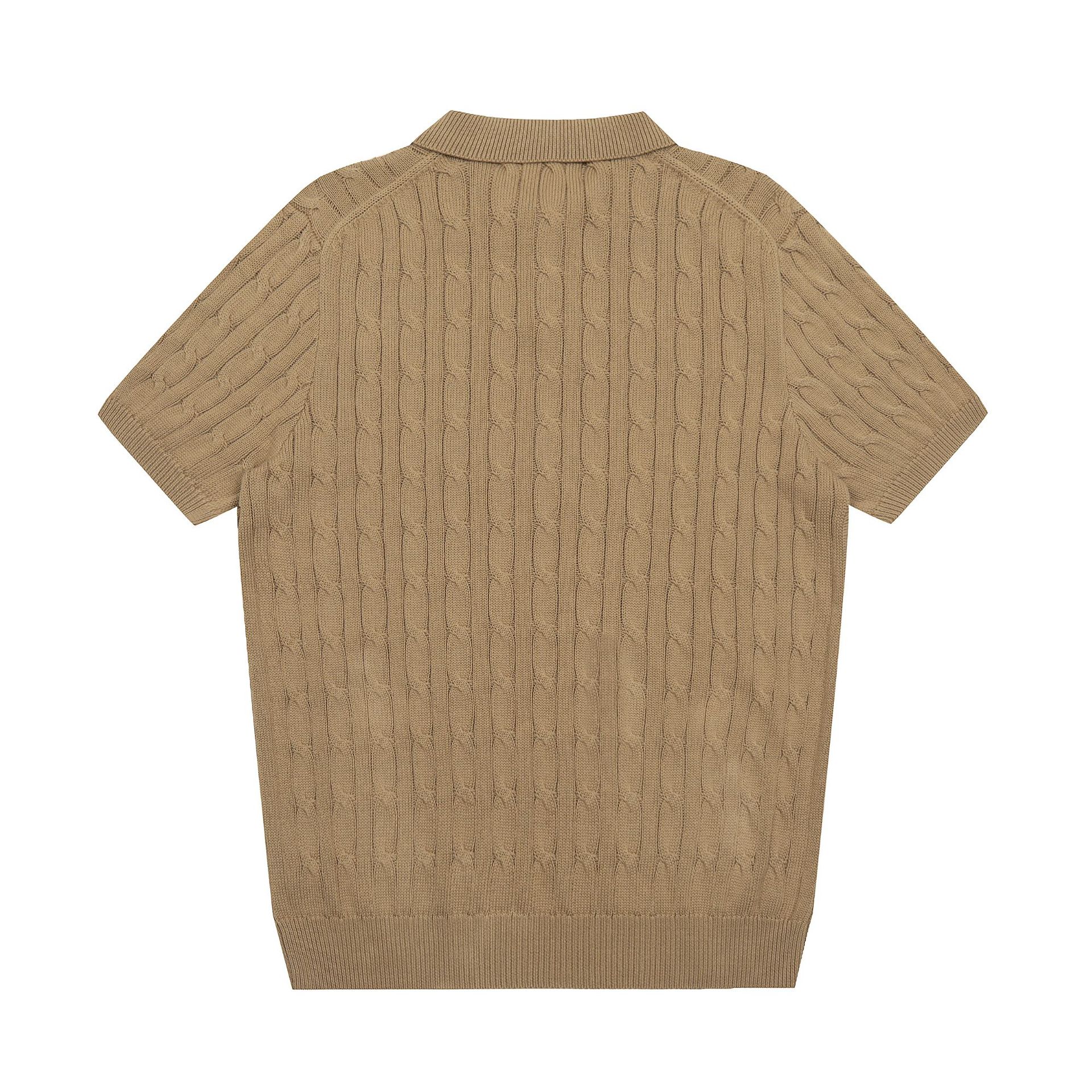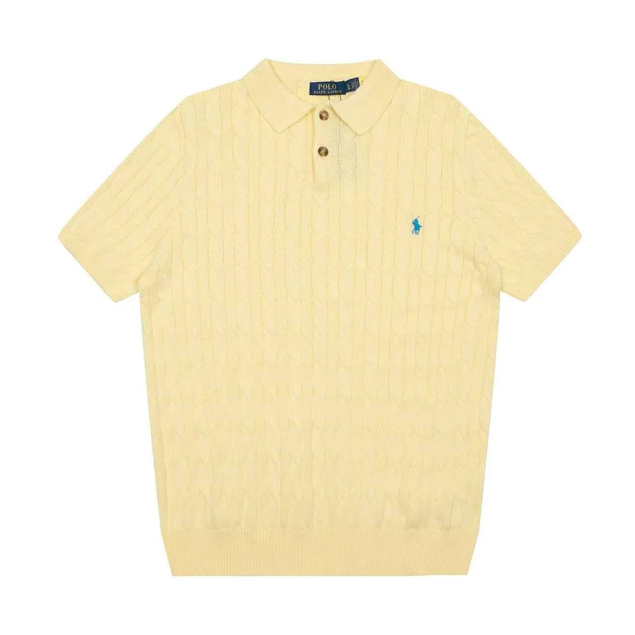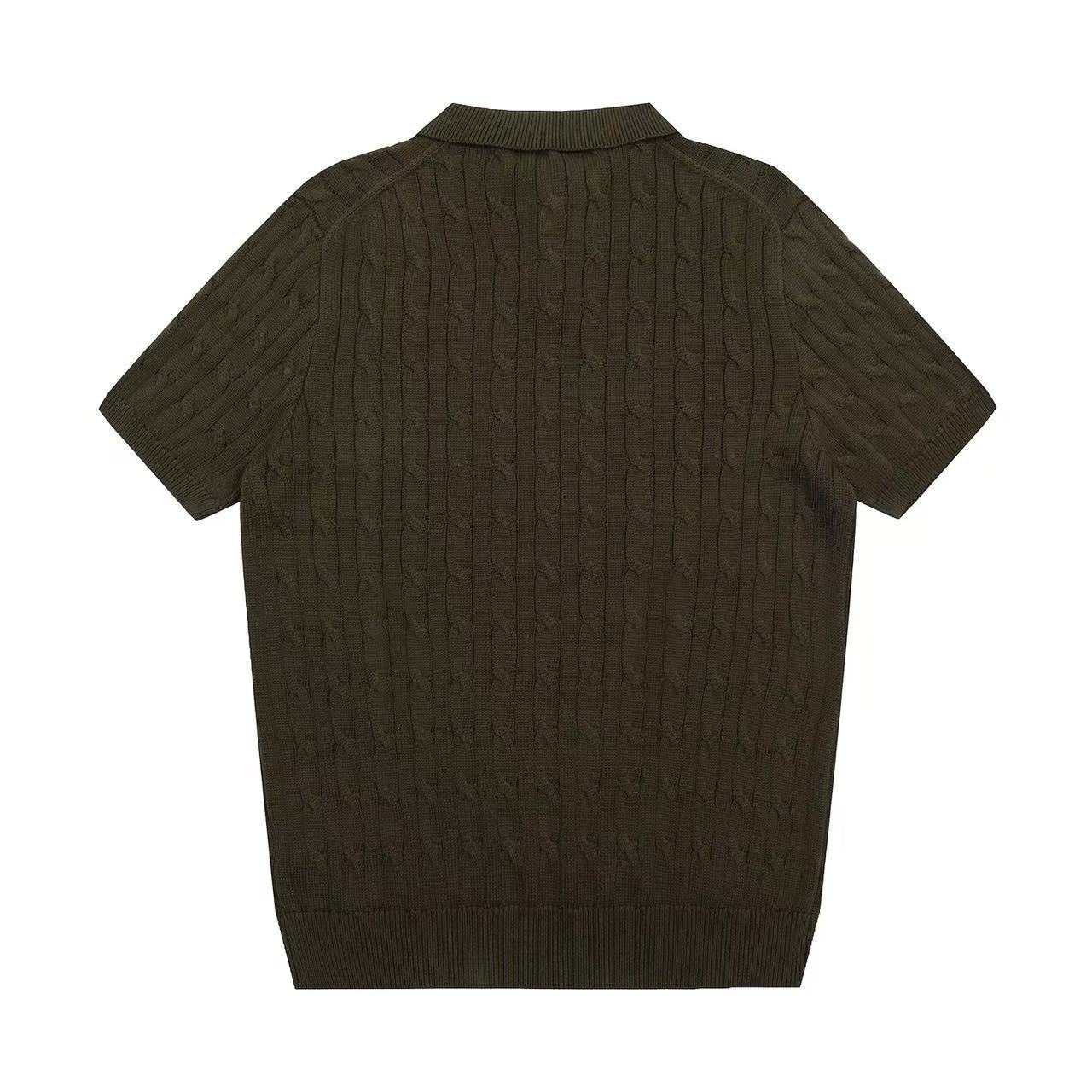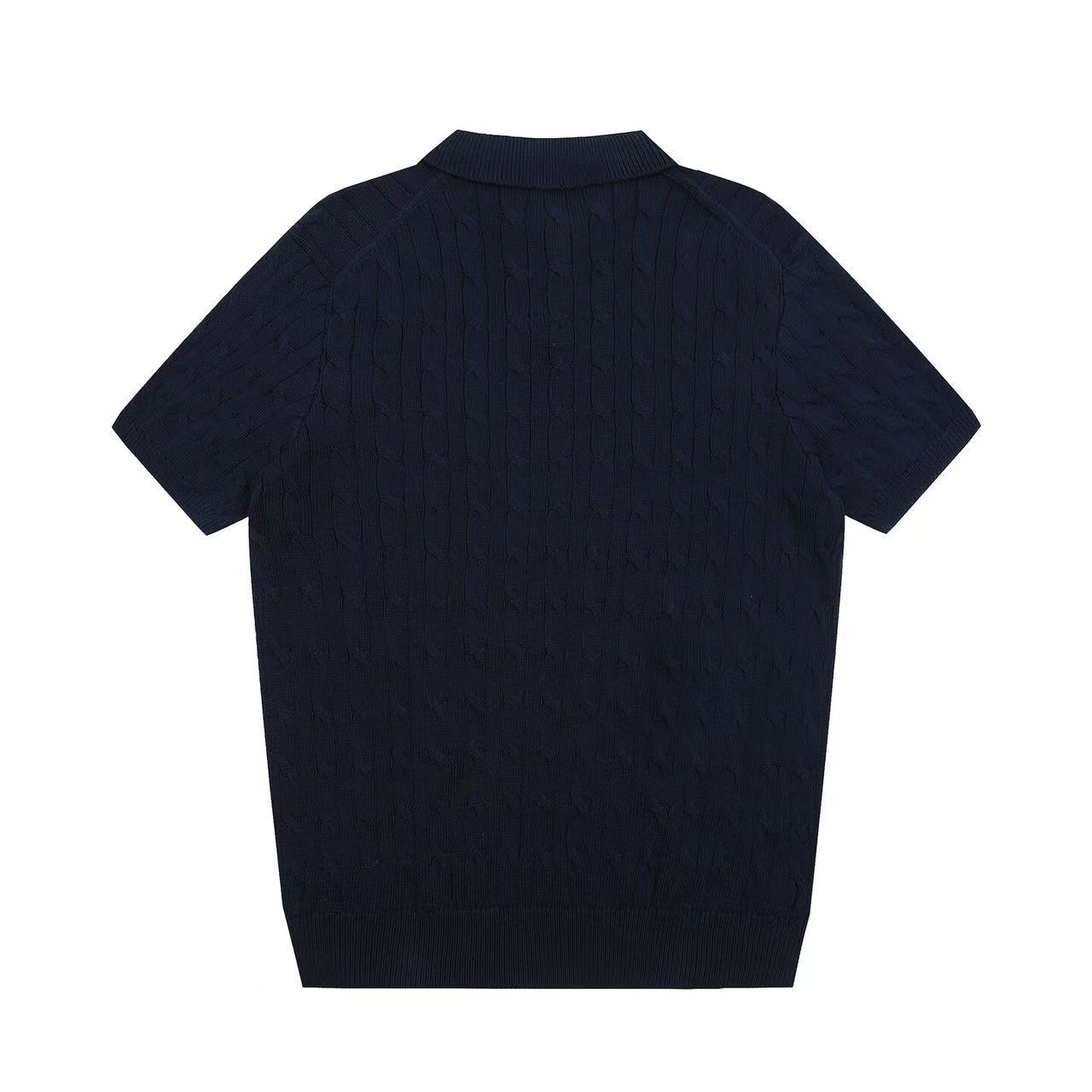 스캔 가능한 QR코드가 있는 RL 랄프 로렌 말 로고 자수 POLO 반팔 니트웨어, 꼬임 카라, 심플한 남성용 티셔츠