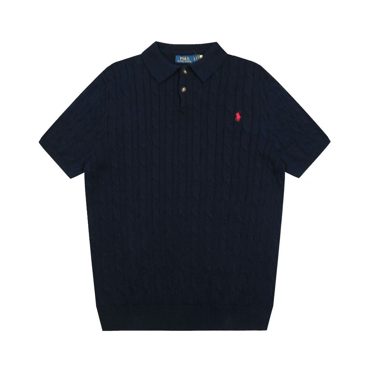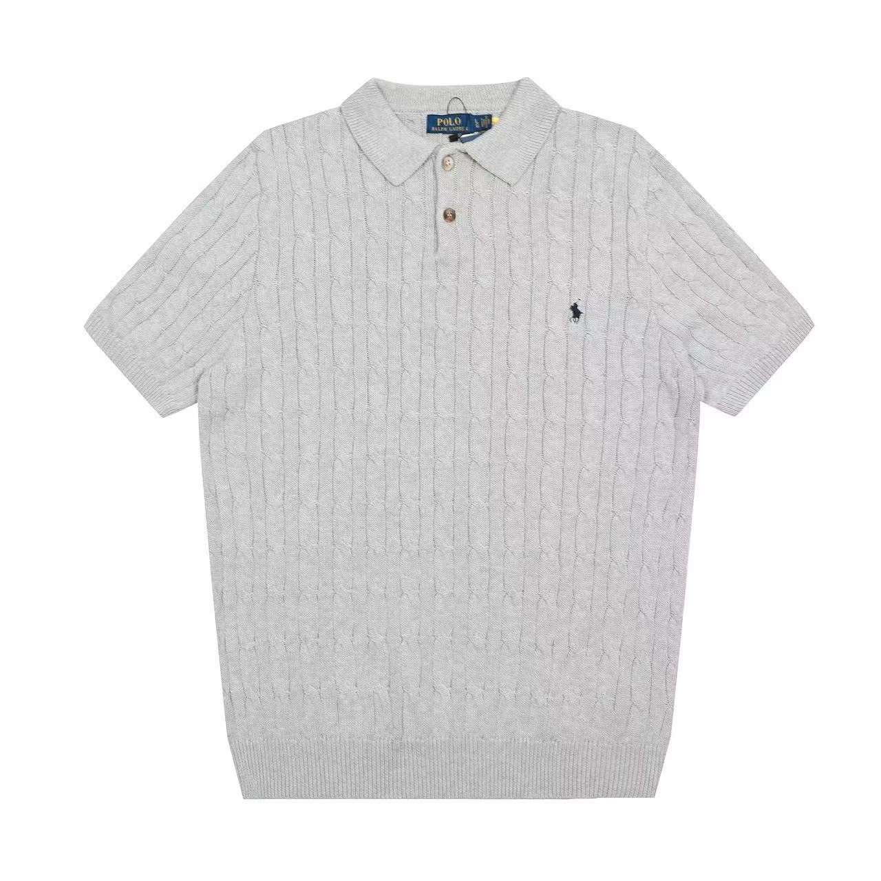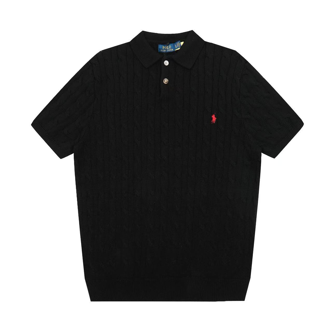 스캔 가능한 QR코드가 있는 RL 랄프 로렌 말 로고 자수 POLO 반팔 니트웨어, 꼬임 카라, 심플한 남성용 티셔츠스토어 가기