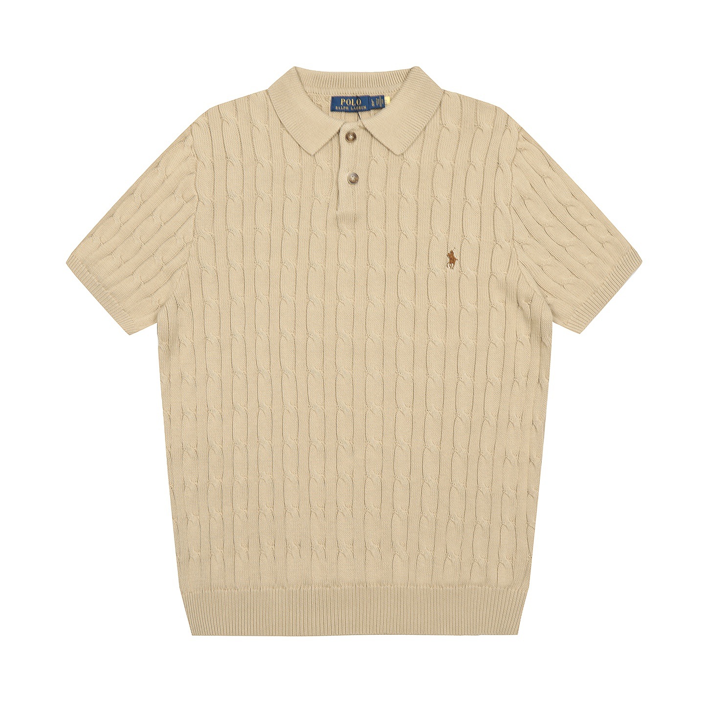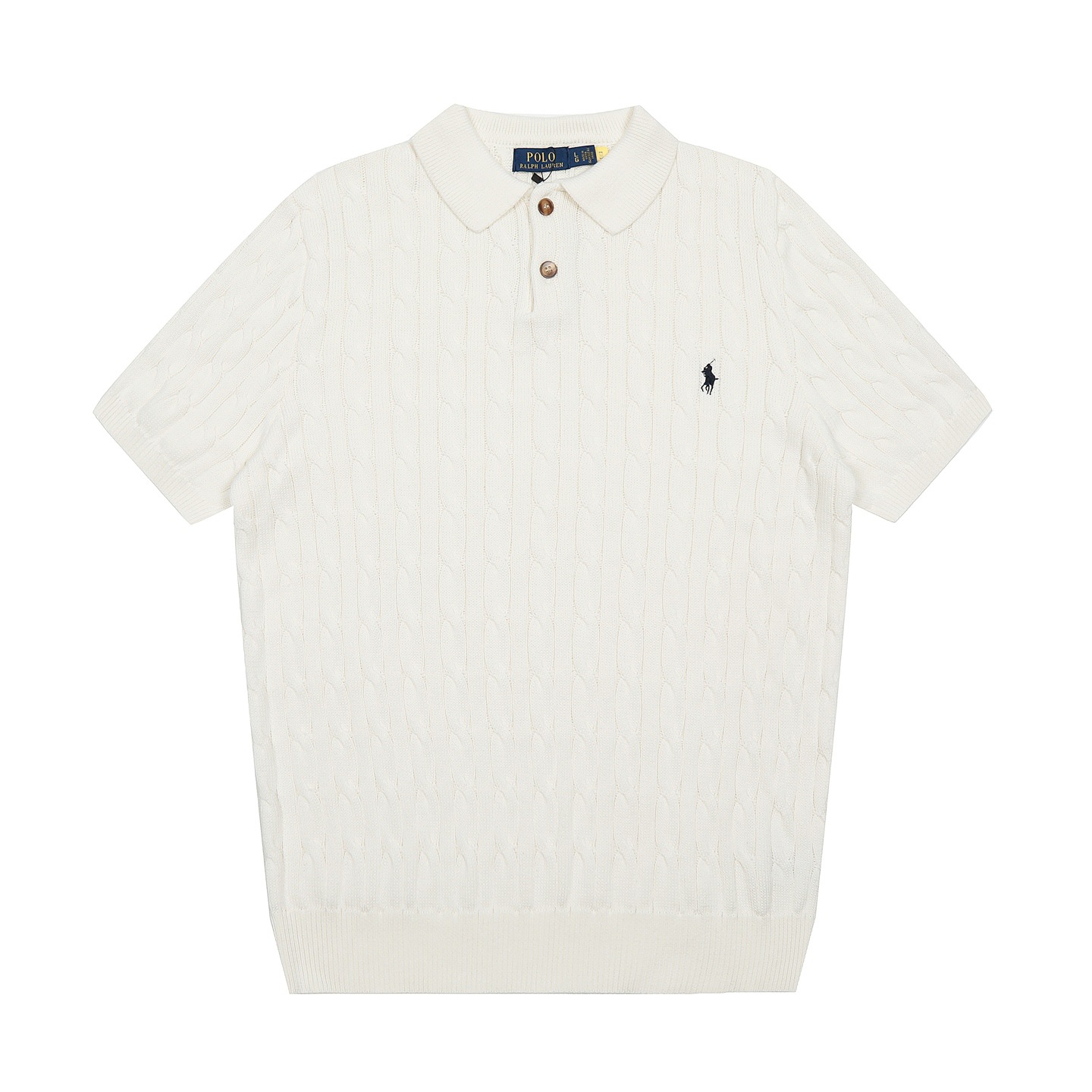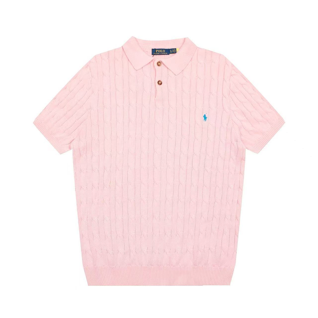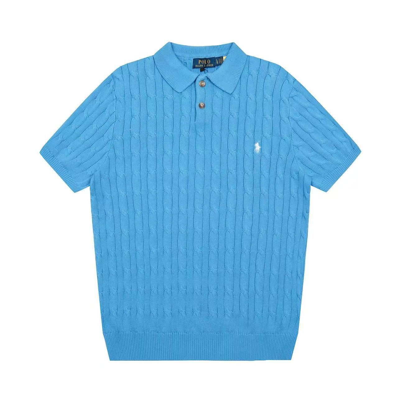 스캔 가능한 QR코드가 있는 RL 랄프 로렌 말 로고 자수 POLO 반팔 니트웨어, 꼬임 카라, 심플한 남성용 티셔츠스토어 가기