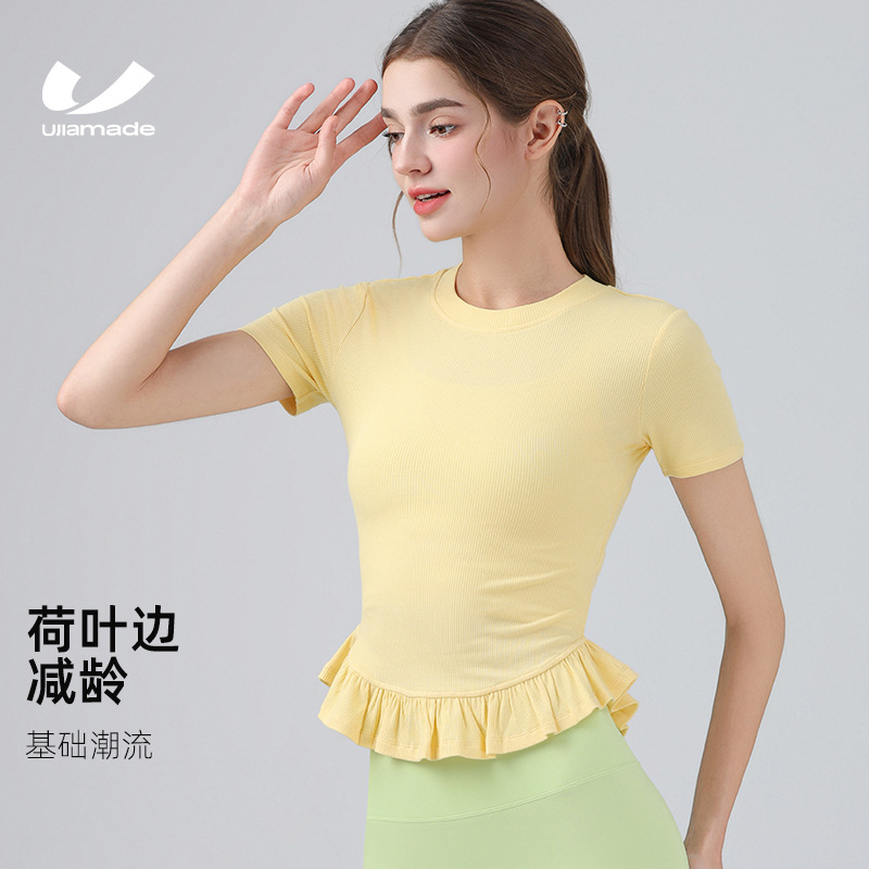 요가 의류 가리 스포츠 반팔 티셔츠 여성용 여름 레이스 요가 티셔츠 슬림핏 슬리밍 탑 피트니스 아우터웨어스토어 가기