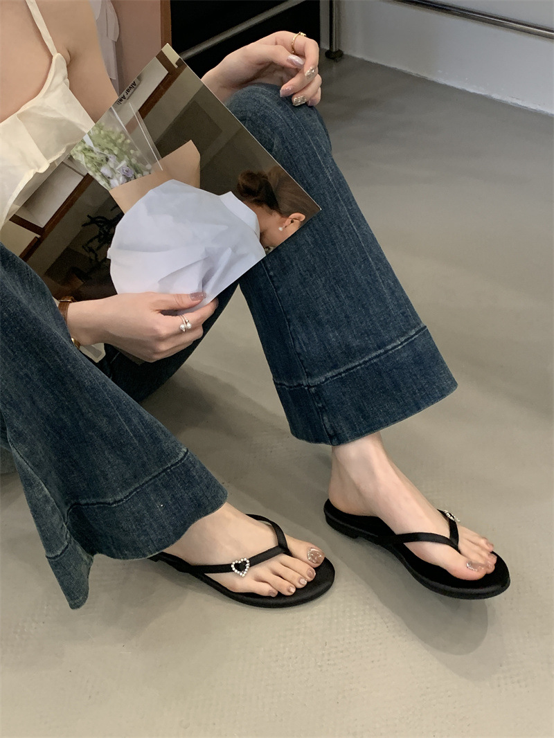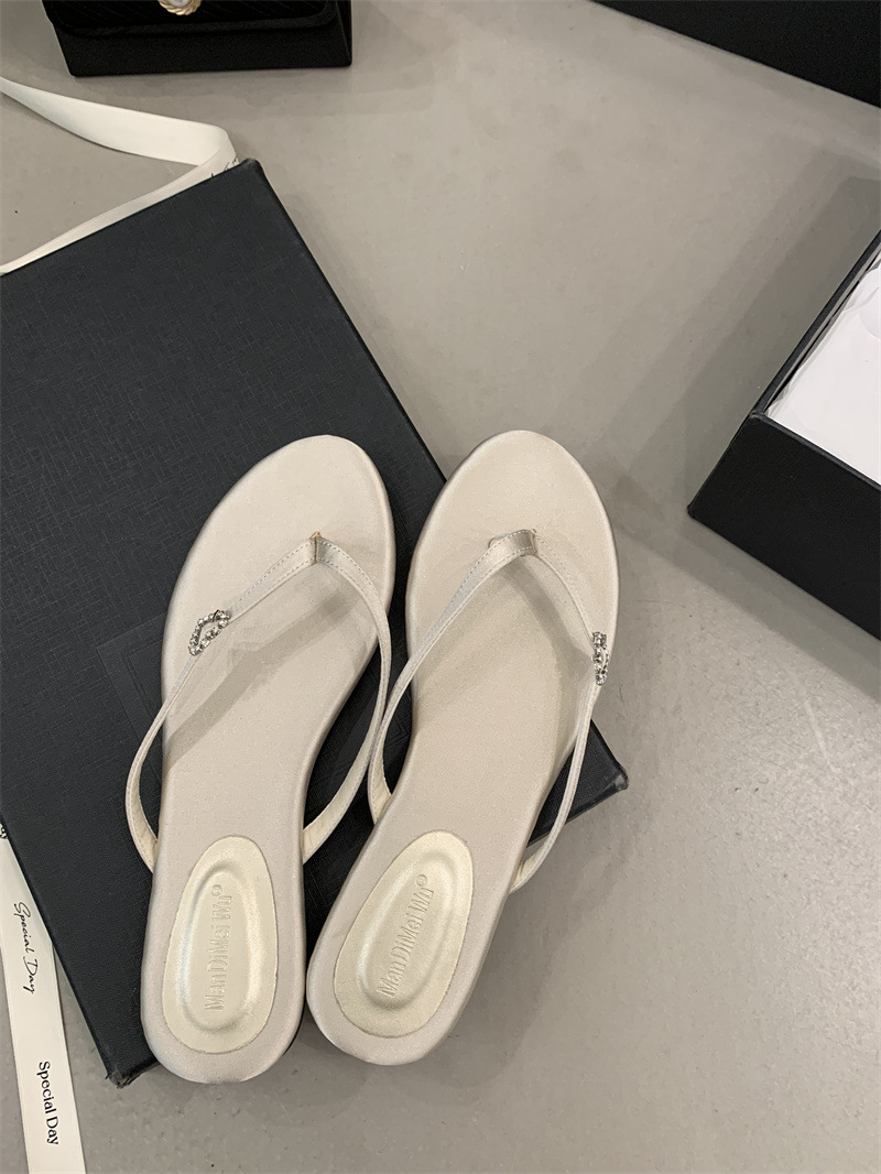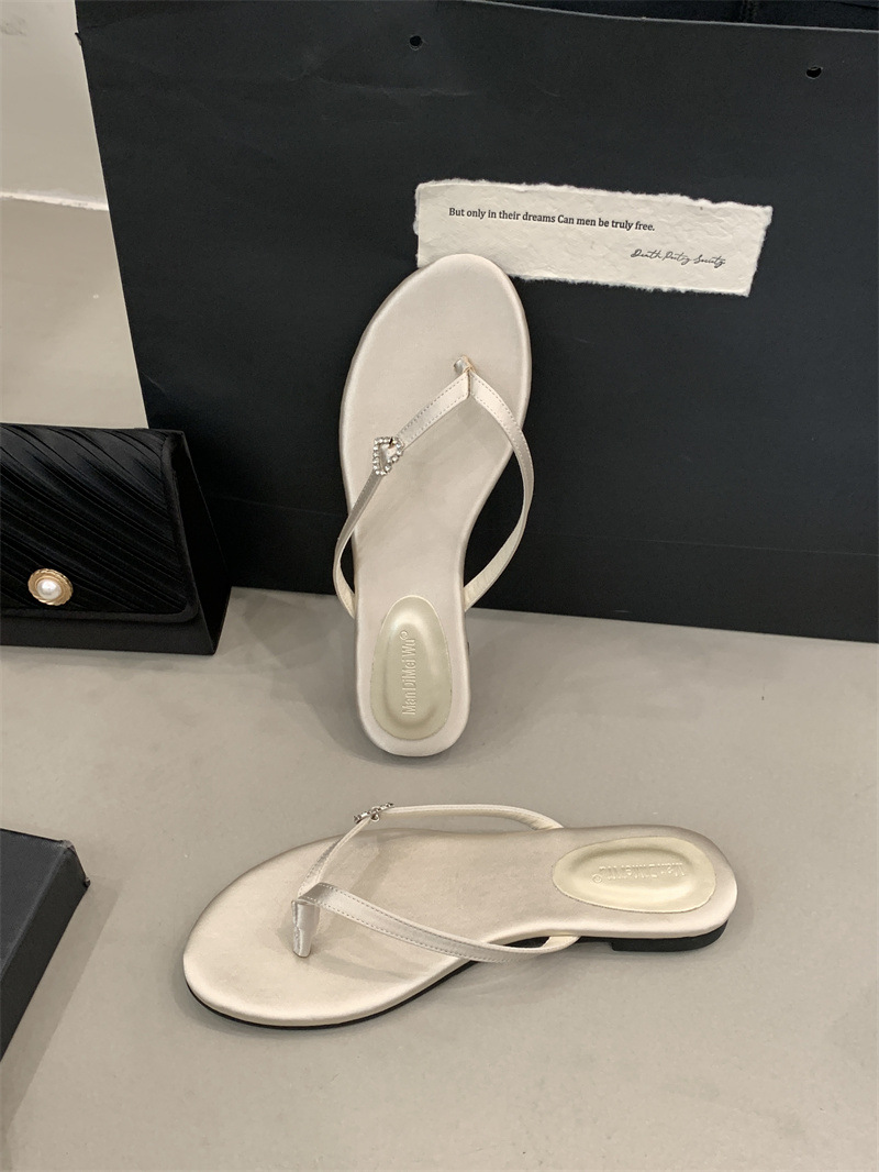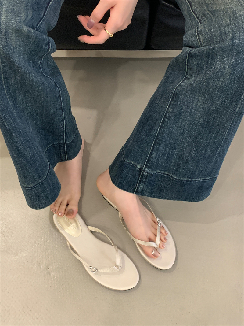 2025 여름 새로운 한국 패션 플랫 샌들 편안한 플립 플롭 비치 로우 힐 여성 슬리퍼