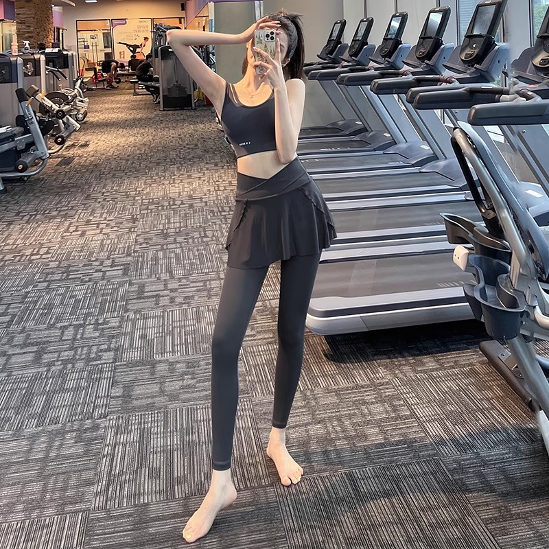 플러스 사이즈 여성용 요가 팬츠, 봄/가을용 투피스 스타일 스커트 팬츠, 기모 안감, 러닝, 빅사이즈 스포츠 레깅스, 피트니스 의류, 겨울용