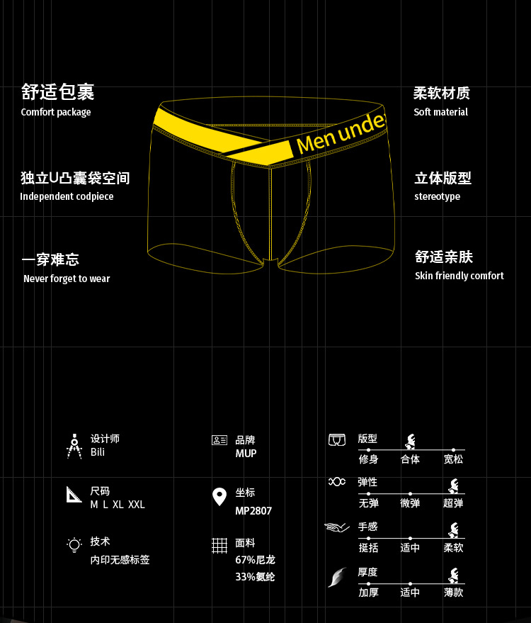 벨트 팬티 PUMP!섹시한 그라데이션 레이저 로우 웨이스트 볼록 모달 편안하고 통기성이 뛰어난 남성용 속옷 MP28