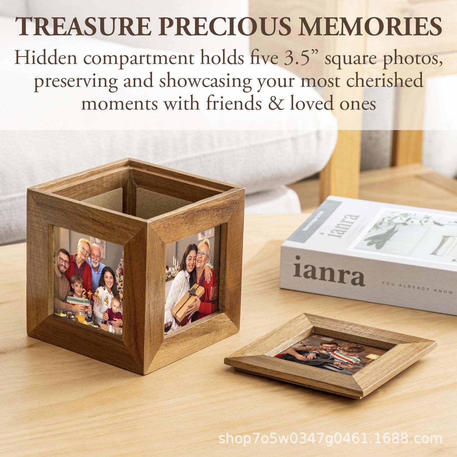 뚜껑이 있는 가정용 나무 4면 사진 프레임 테이블, 사진 프레임이 있는 보관함, 펜 홀더, 장식 기념품 사진 프레임스토어 가기