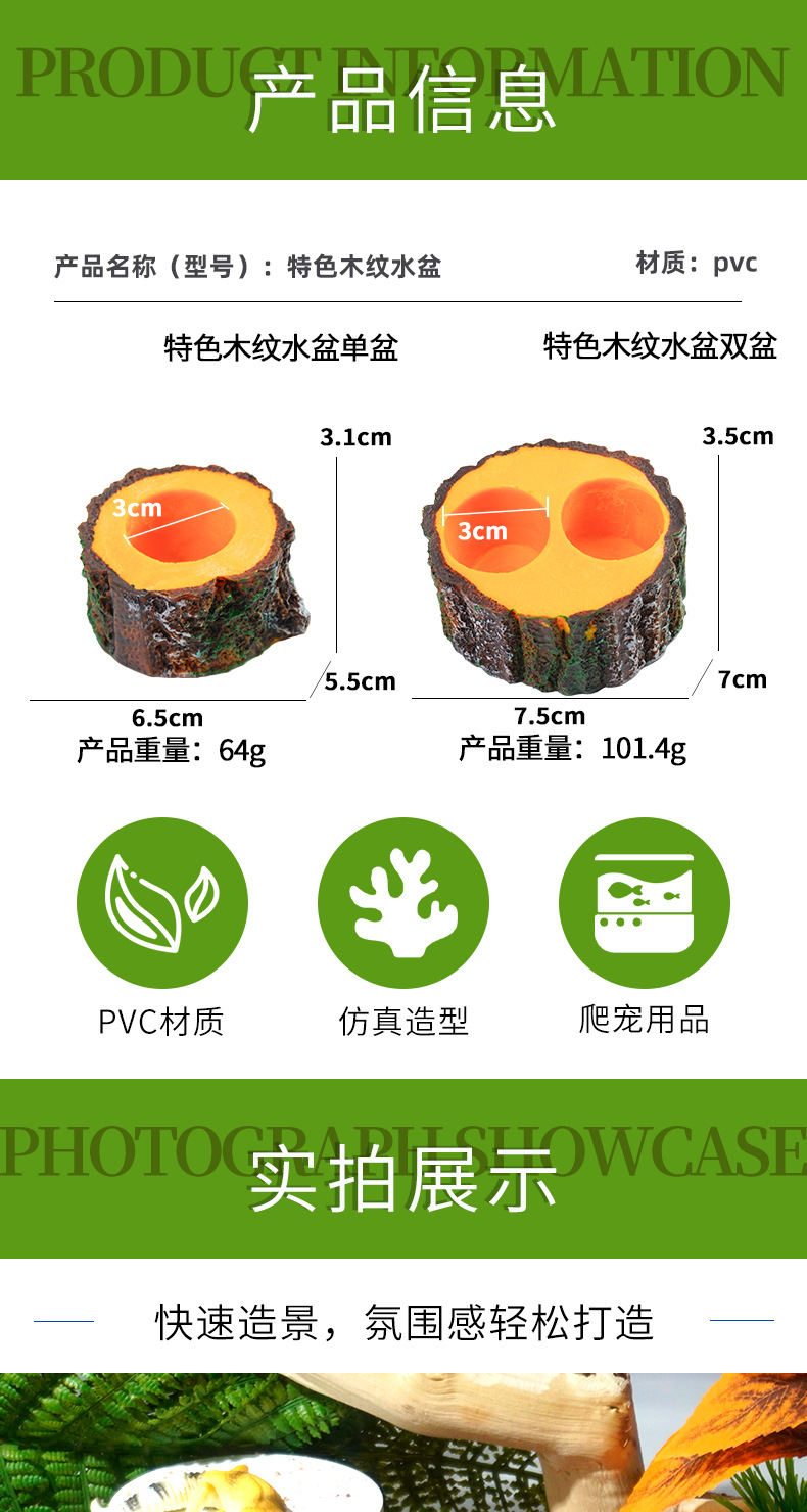 수족관 대형 장식품 도마뱀 파충류 애완 동물 제조업체 새로운 수지 장식 먹이 및 물 공급 장면 파충류 애완 동물 먹이스토어 가기