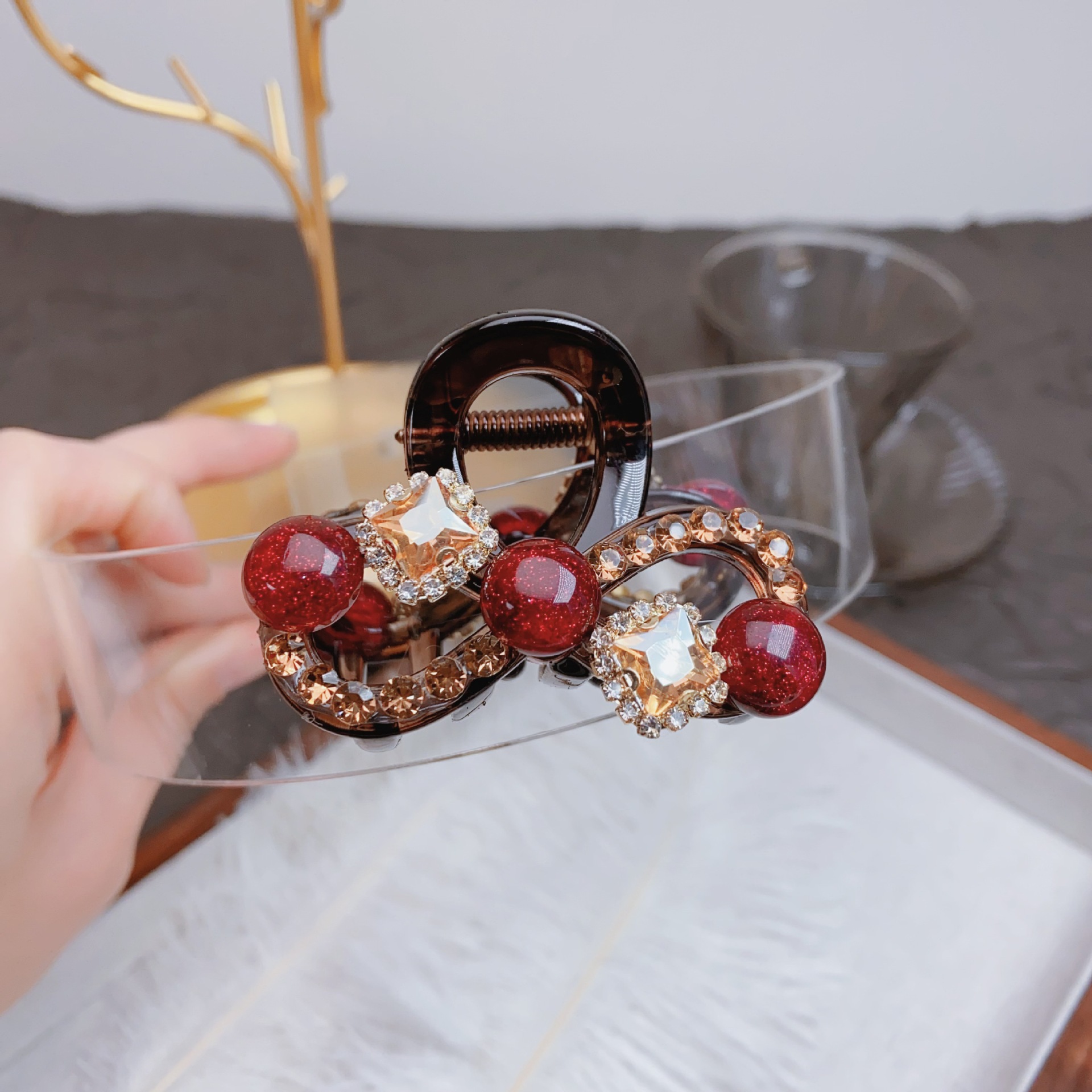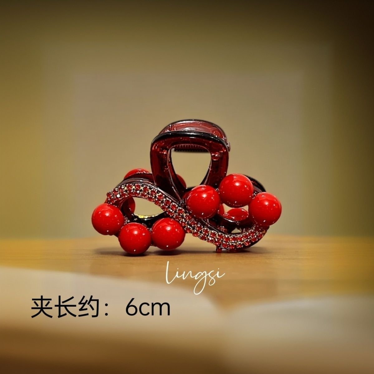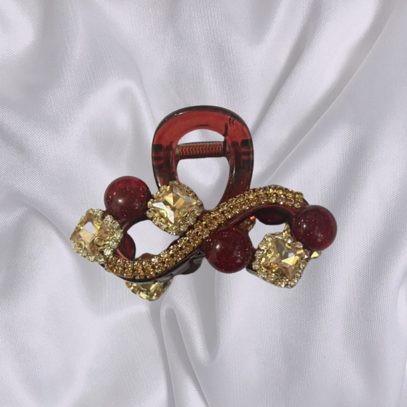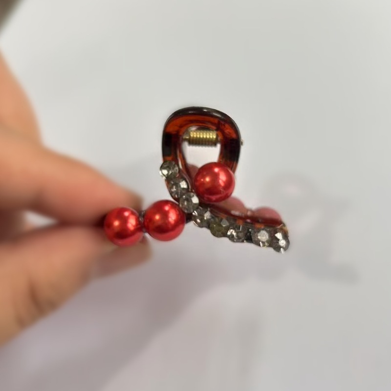 • 레드 라인스톤 앞머리 클립 [4.4cm]
