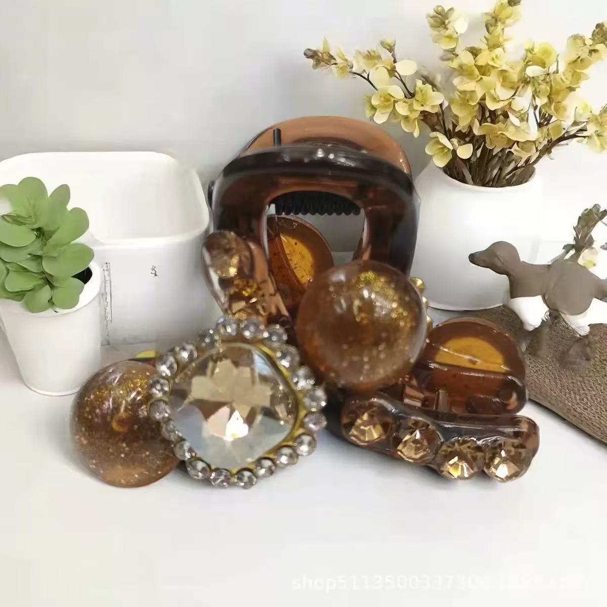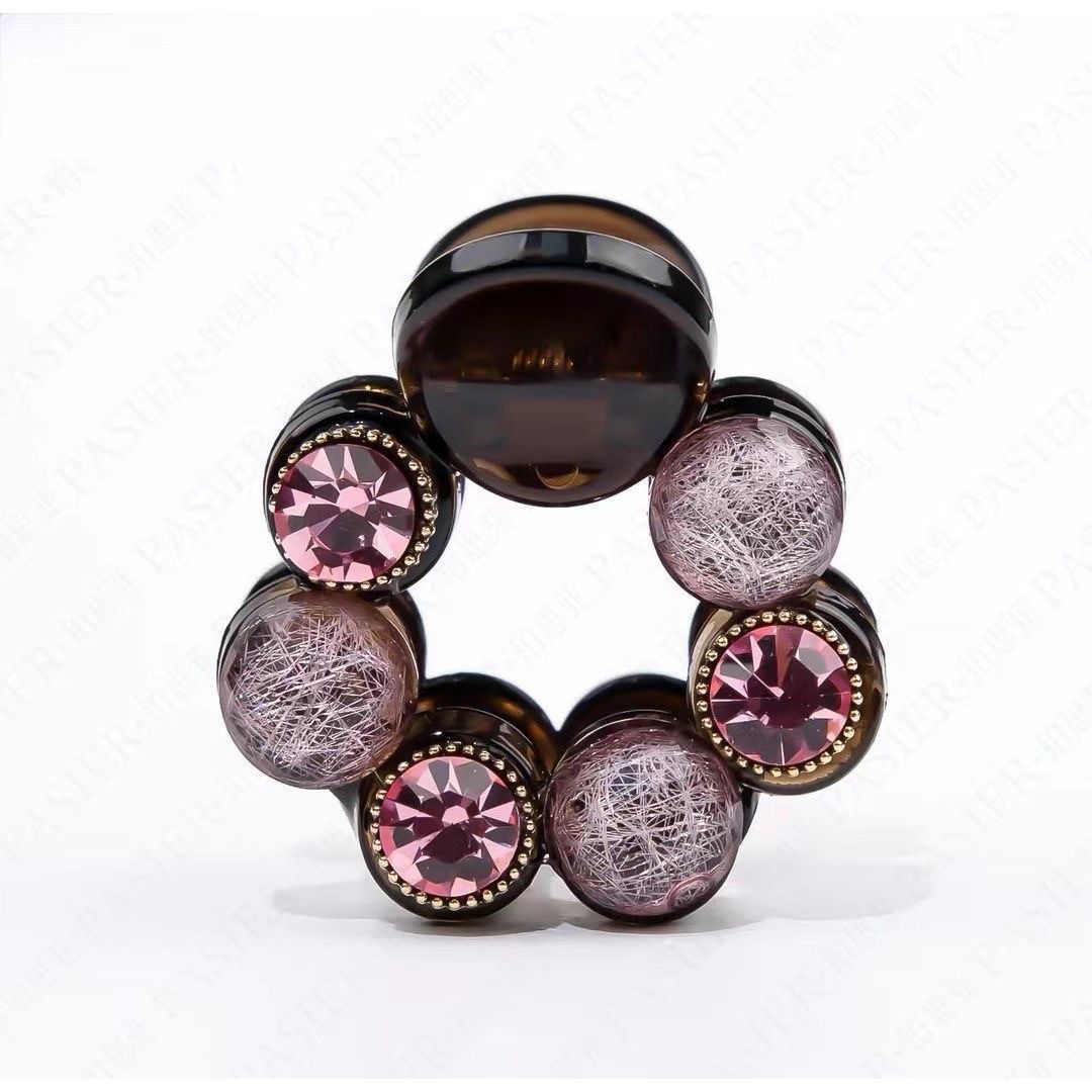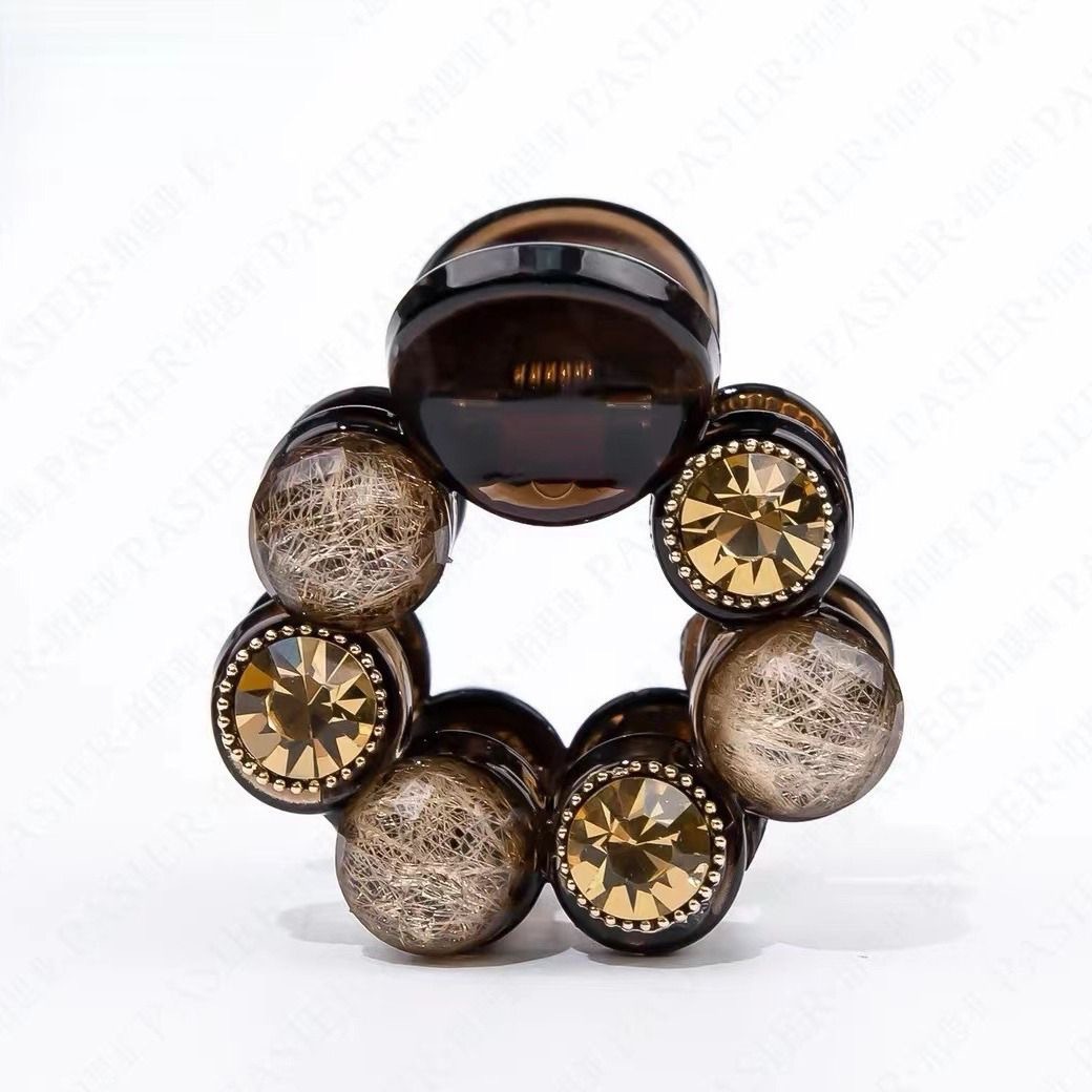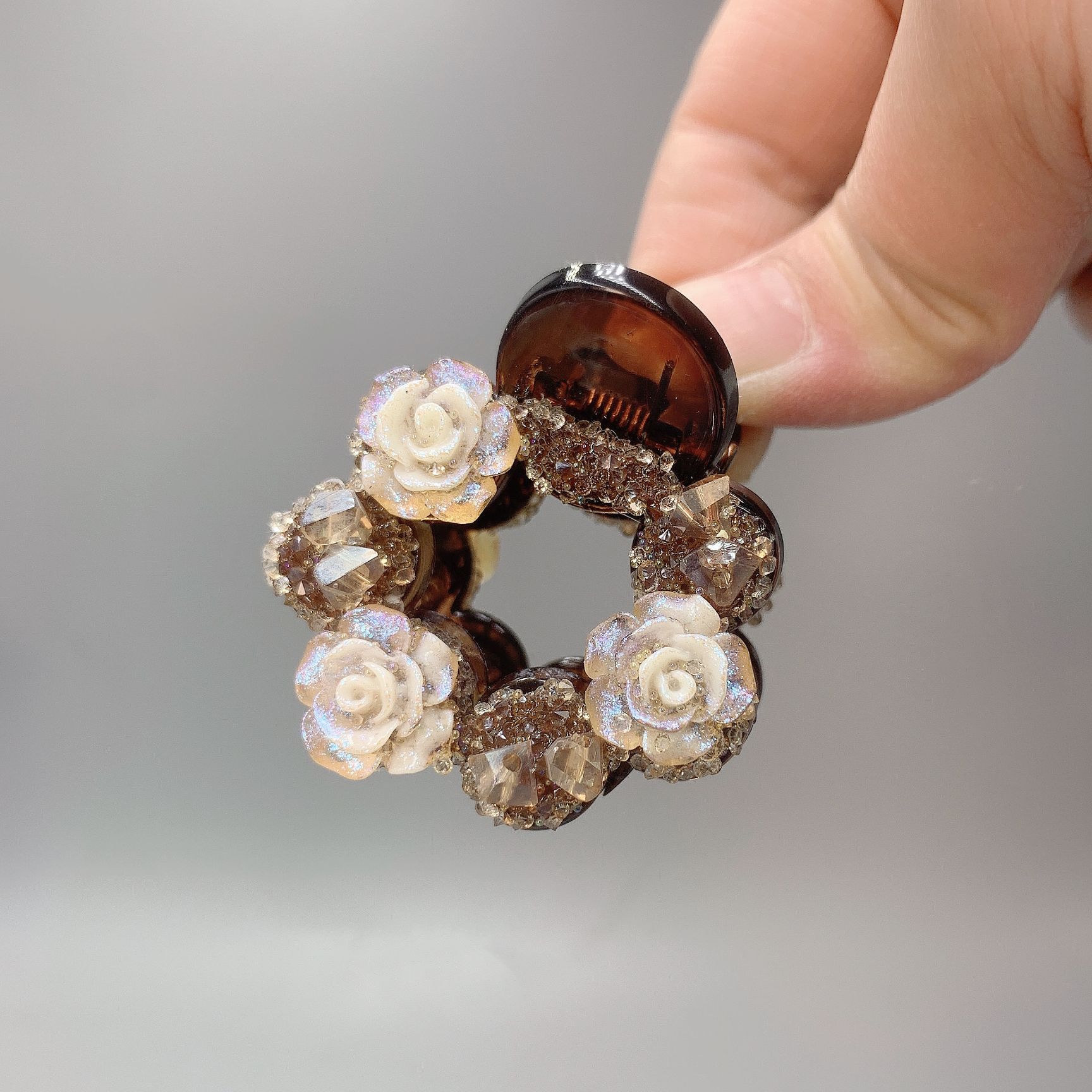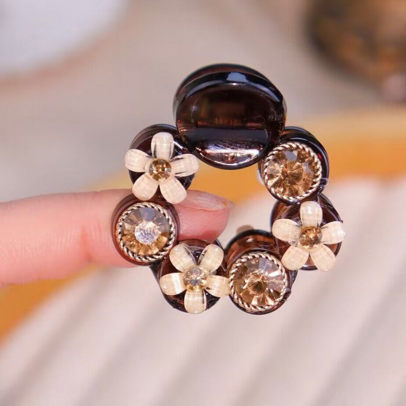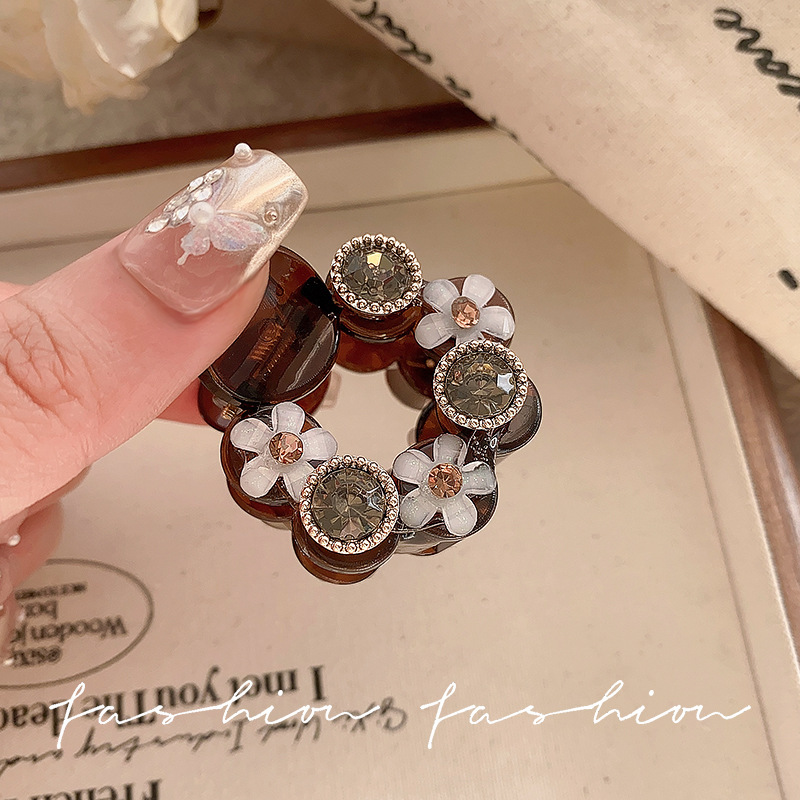 • 브라운 플라워 다이아몬드 라운드 클립