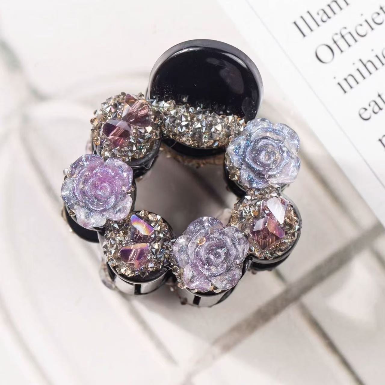 • 보라색 꽃 다이아몬드 라운드 클립