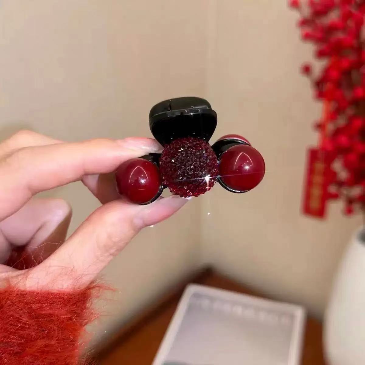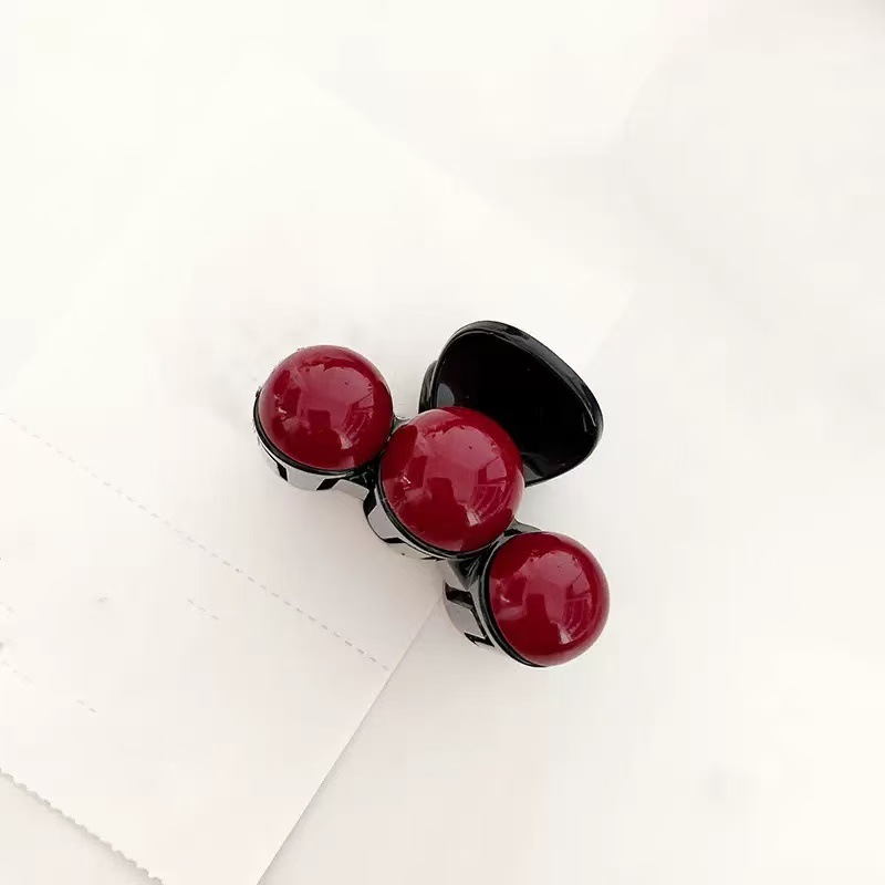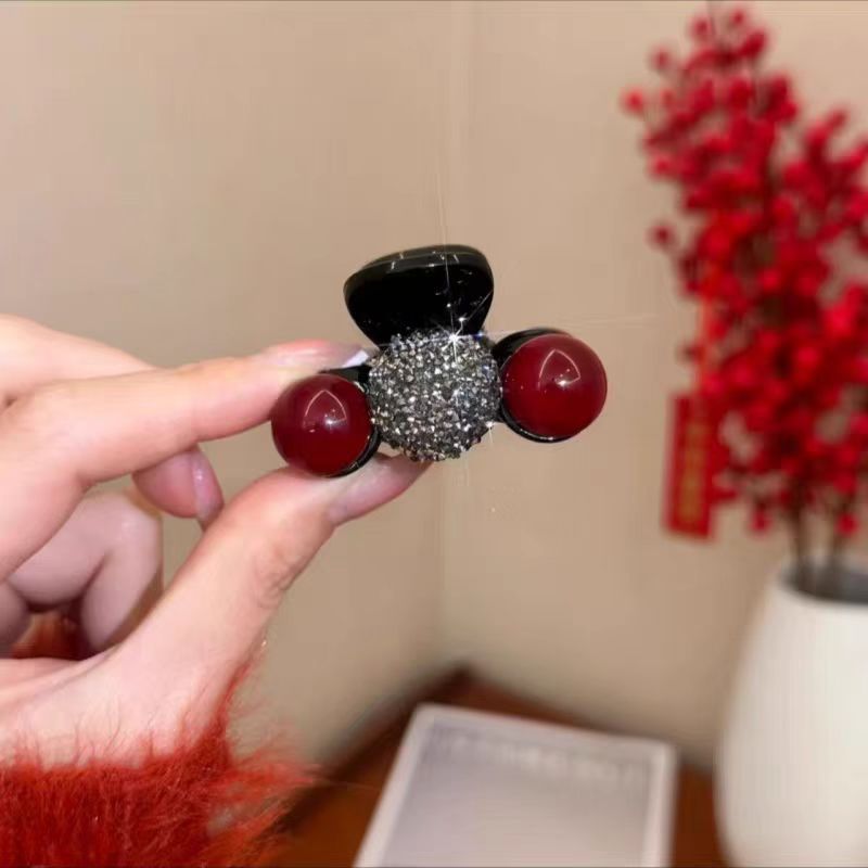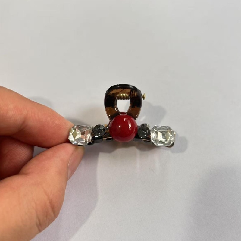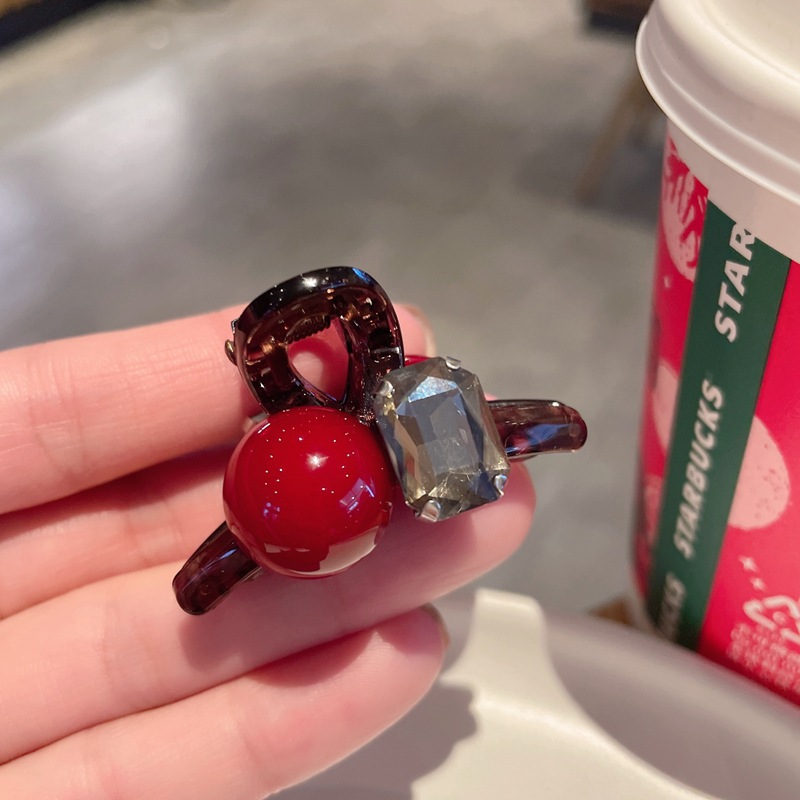 • 블랙 다이아몬드 레드 비즈 집게핀 [5cm]
