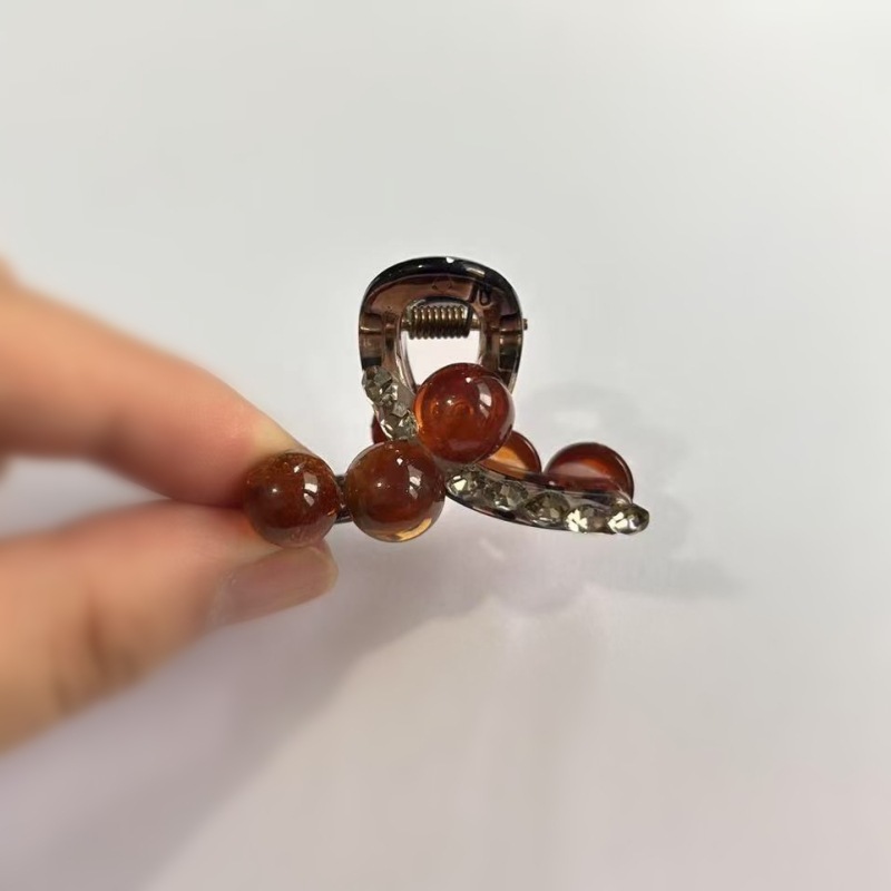 • 브라운 사각 다이아몬드 글리터 비즈 클립 [4.5cm]